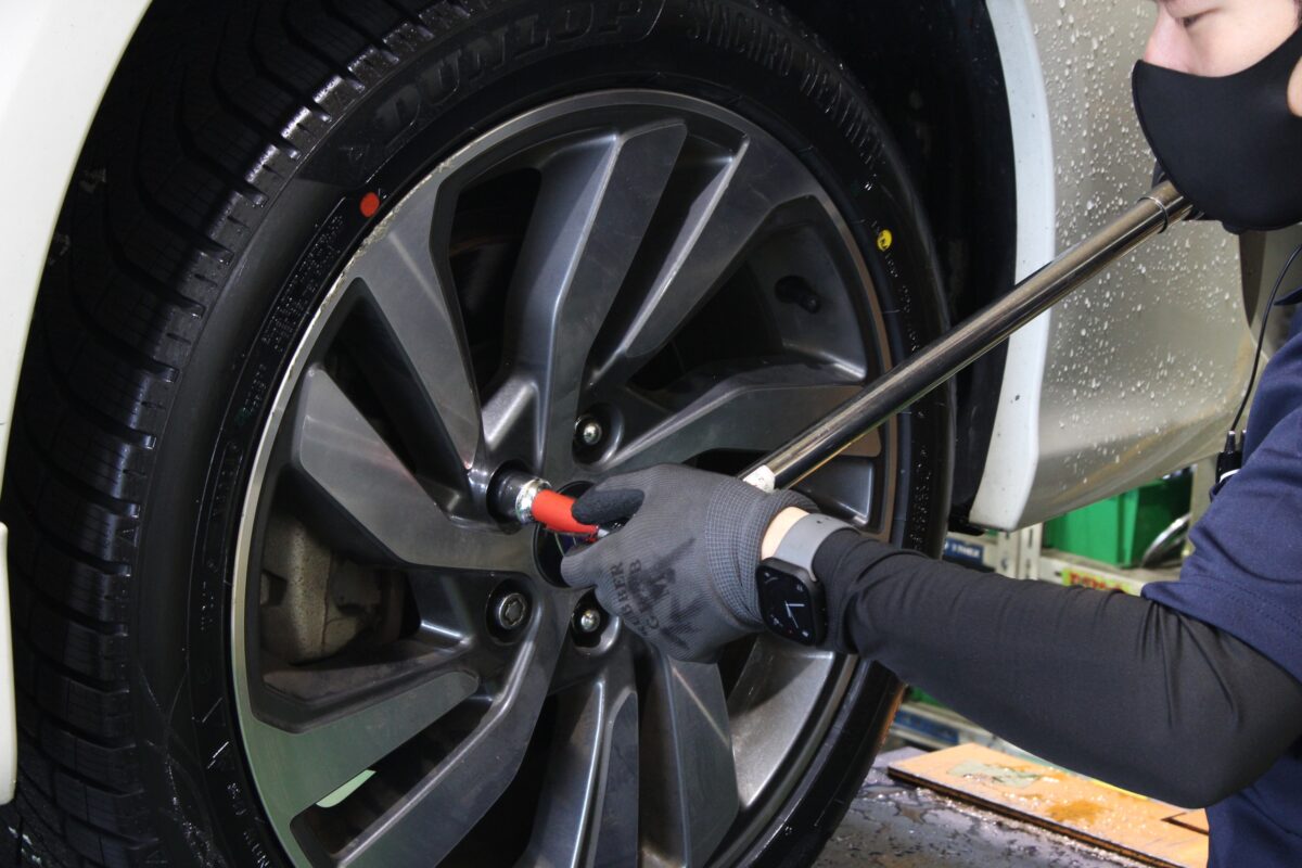 タイヤ空気圧を適正値に合わせて、トルクレンチを使用してメーカー規定トルクにて締付!