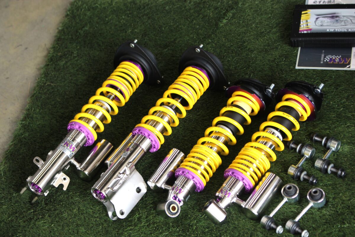 最高峰とも謳われるドイツのKW(カーヴェー)車高調でローダウンしていきます。