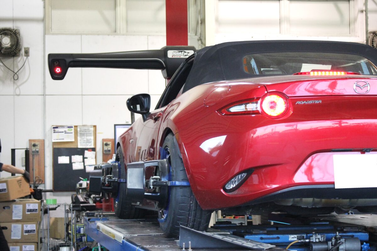 標準でフル調整の足回りのロードスター、フロント:トゥ・キャンバー・キャスター、リア:トゥ・キャンバー