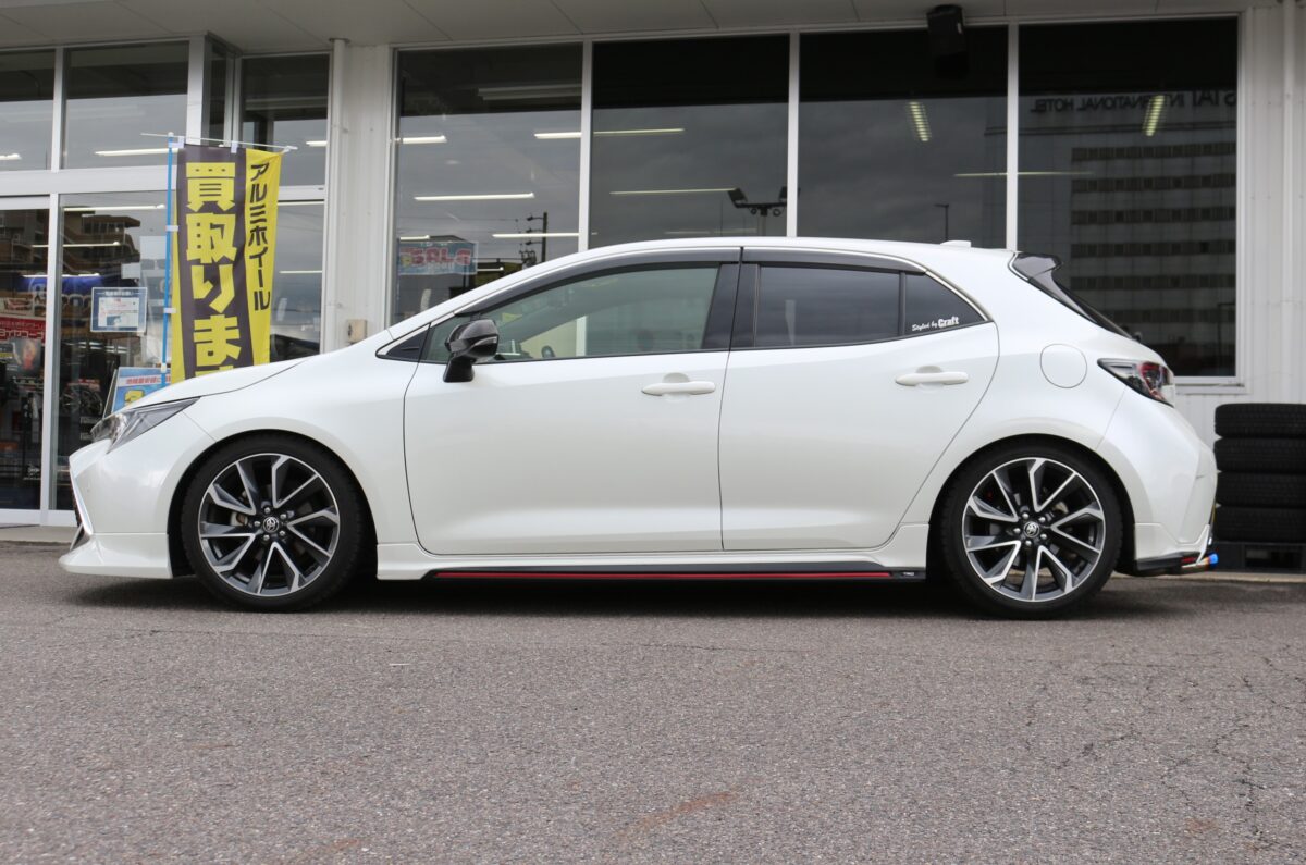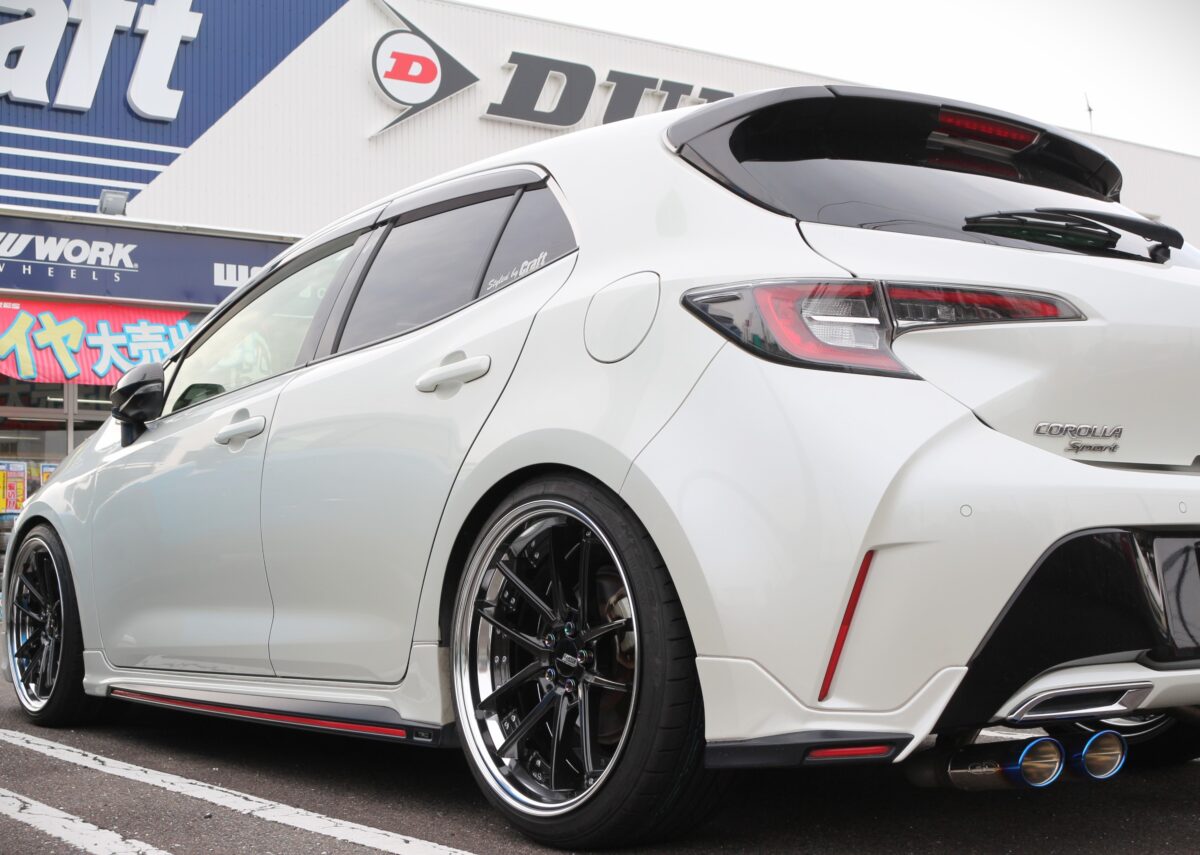 カローカローラスポーツのご来店が多いクラフト多治見店です常連のK様にツライチでカスタムしたいとご用命を頂きました^^