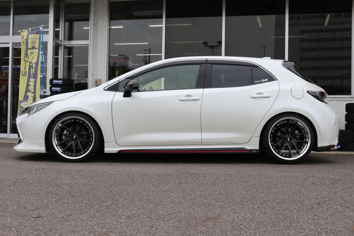 カローラスポーツはローダウン施工にて太履きが出来るお車ですので、