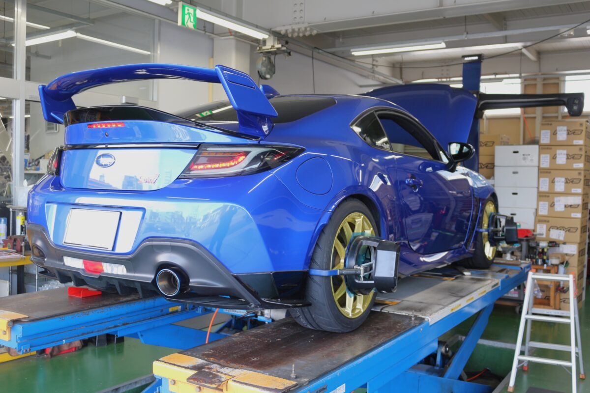 今回は四輪アライメント調整も一緒に施工させていただきます!新たにタイヤホイールセットを装着されるならば