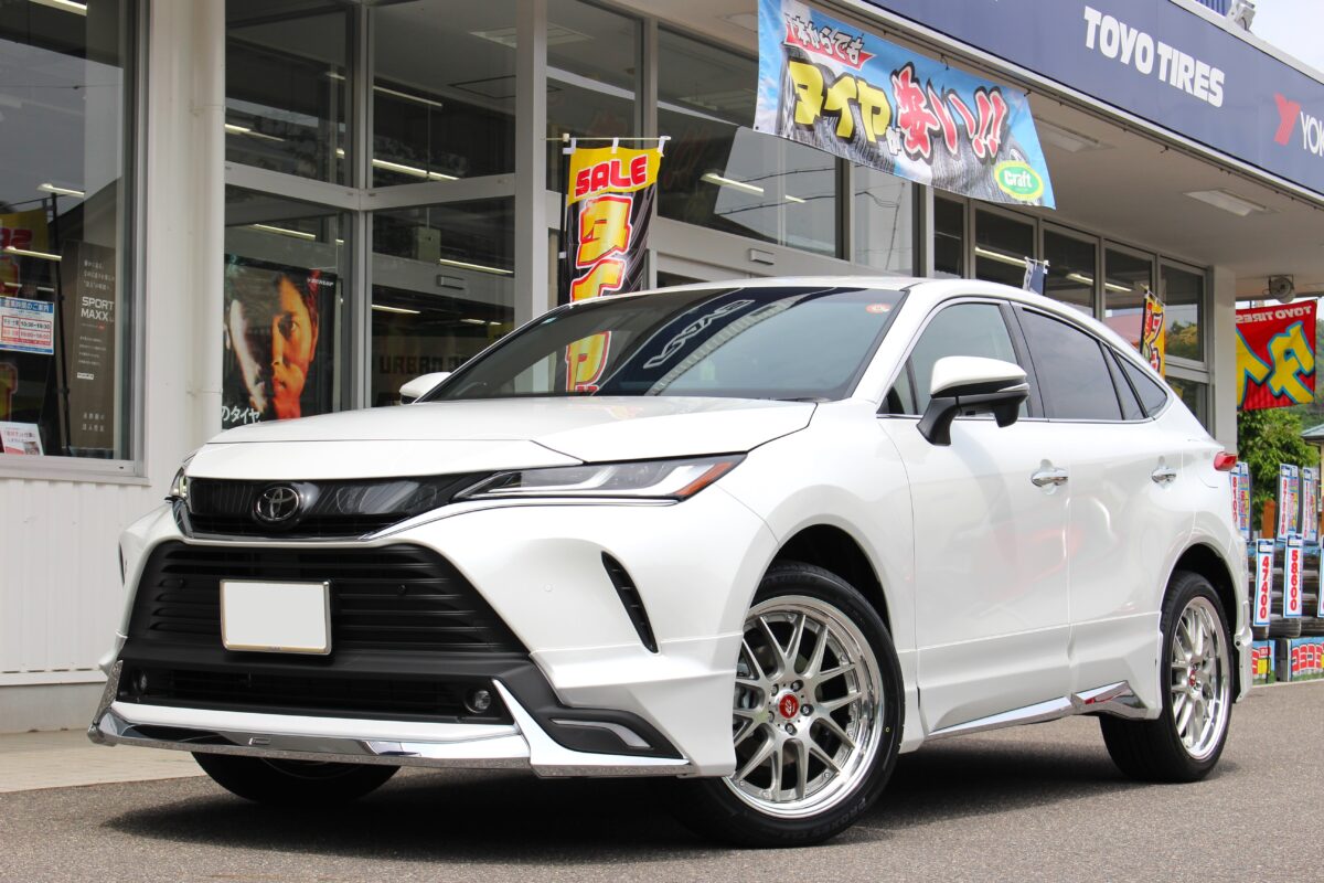 ハリアーをウェッズスポーツSA20Rで仕上げました。     こんにちは。クラフト一宮店です。 本日は60系ハリアーの タイヤ・ホイールセット装着の様子をお届けです。 早速取り付けていくホイールをどうぞ!     【SPEC】 WHEEL:WEDS ウェッズスポーツSA-20R SIZE:8.5J-19インチ Color:MBF tire:ブリヂストン アレンザLX100     鋳造ながらAMF製法を駆使して 軽量化が図られたスポーツホイールシリーズ。 圧力をかけてリムを成型する圧延製法で、 強度を高めながらより薄く・軽さを実現したホイールです。     合わせるタイヤは乗り心地にこだわり、 ブリヂストンのSUV専用コンフォートタイヤ アレンザLX100をチョイスいただきました。   『SUV専用設計』なだけあり、タイヤサイドの 剛性を高めたタイヤで安定感は抜群。 重量の重たいSUVでロングライフも実現。 静粛性も高く、車両の性格ともよくあった ハイスペックタイヤです。     SUVにスポーツホイール。 ご相談いただくときにアンマッチじゃない? なんて言われることがありますが、 装着してみるとメチャクチャ似合ってますよね!? カッコよく仕上がるんですよ!     タイヤ&ホイールショップのクラフトでは ホイールのご相談はもちろん タイヤのみのご相談も大歓迎しております。   タイヤなんてなんでも一緒じゃないの? そんな風に思っている時期が私にもありました。。。 しかし普段使いのお車であればなおさら! タイヤは乗り心地や走行性能、 安全性に大きな影響を与えます。 物価高が続き中々経済的なダメージの大きい時期ですが タイヤは消耗品。必ず必要になる時期がやってきます。 交換をお考えの方は是非一度クラフト一宮店までご相談下さい。 お待ちしております。   管理No:0042503211022
