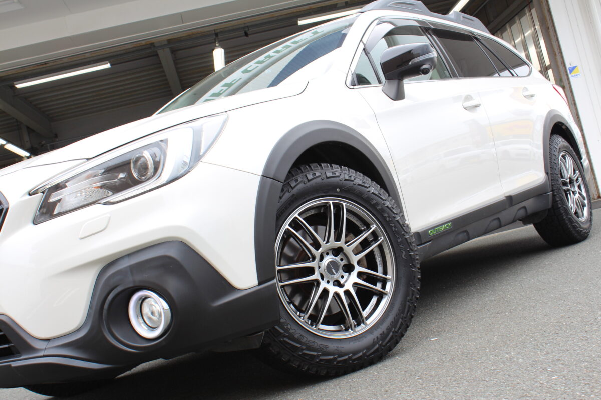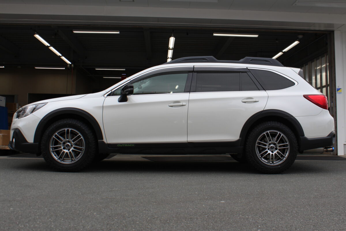 アウトバックは樹脂のフェンダーモールがついているのでスバル車としてはかなりいい感じのサイズが入りますね(^^♪