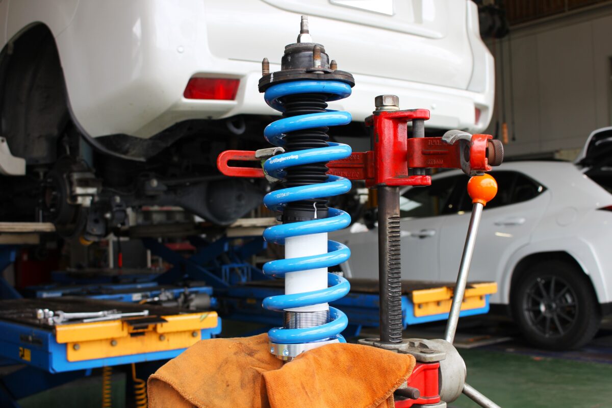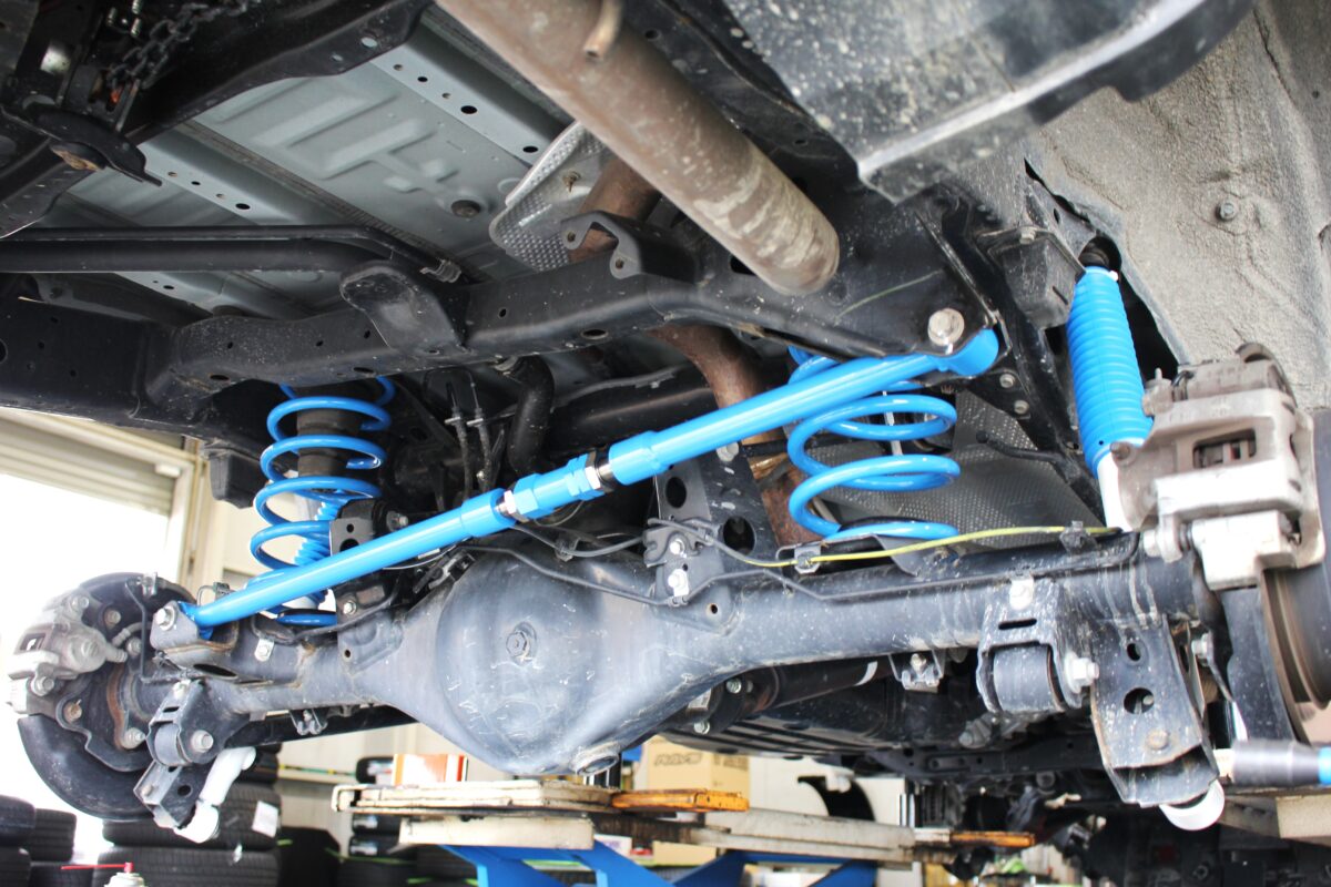 オフロードレースで培われた技術を注ぎ込んだこの青いバネはしっかりと車体をホールドし