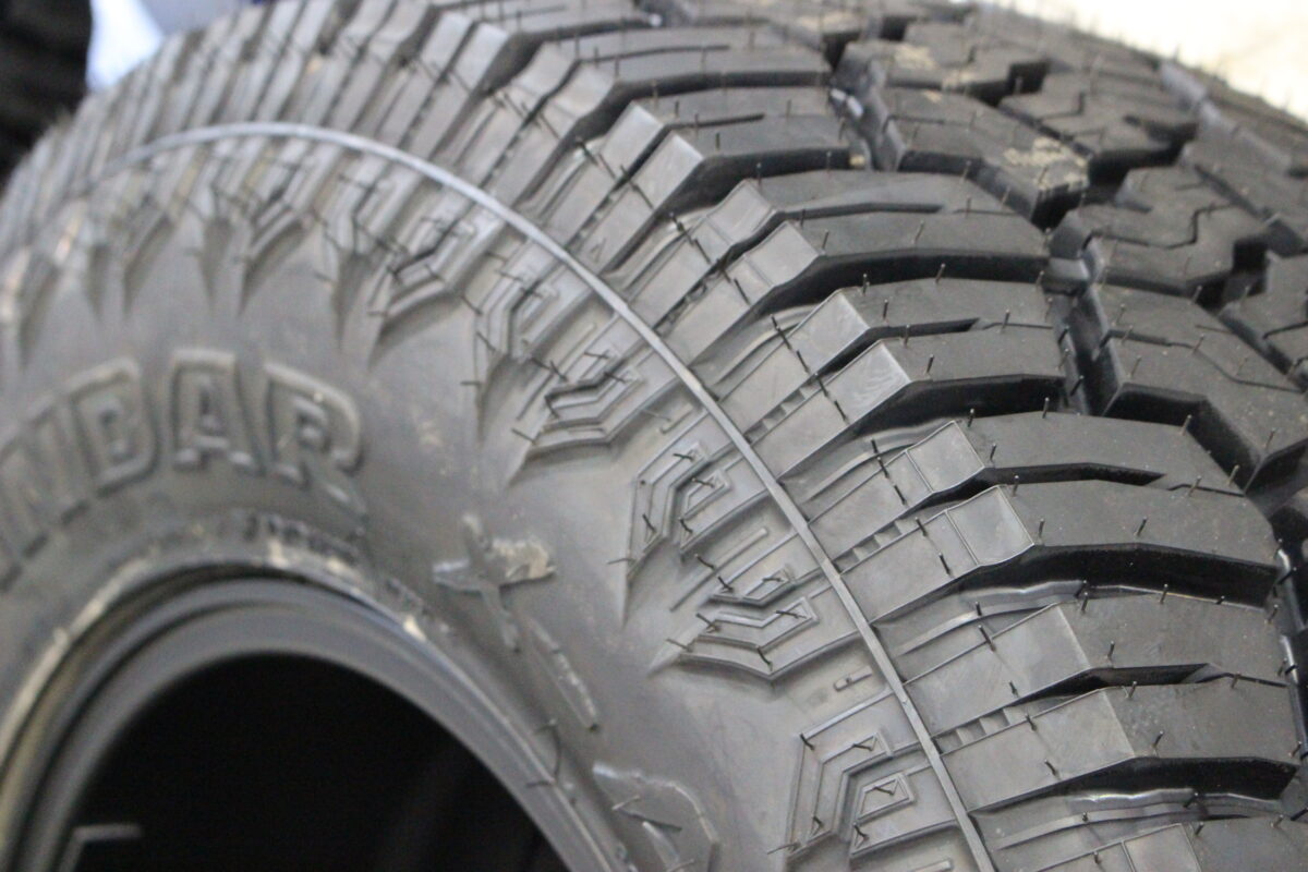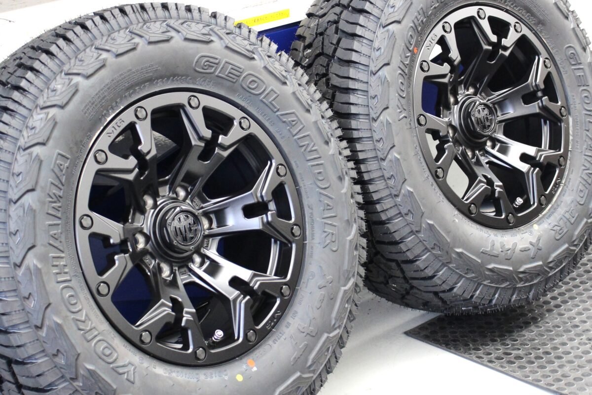 マットブラックカラーのホイールとオールテレーンタイヤの組み合わせ。
