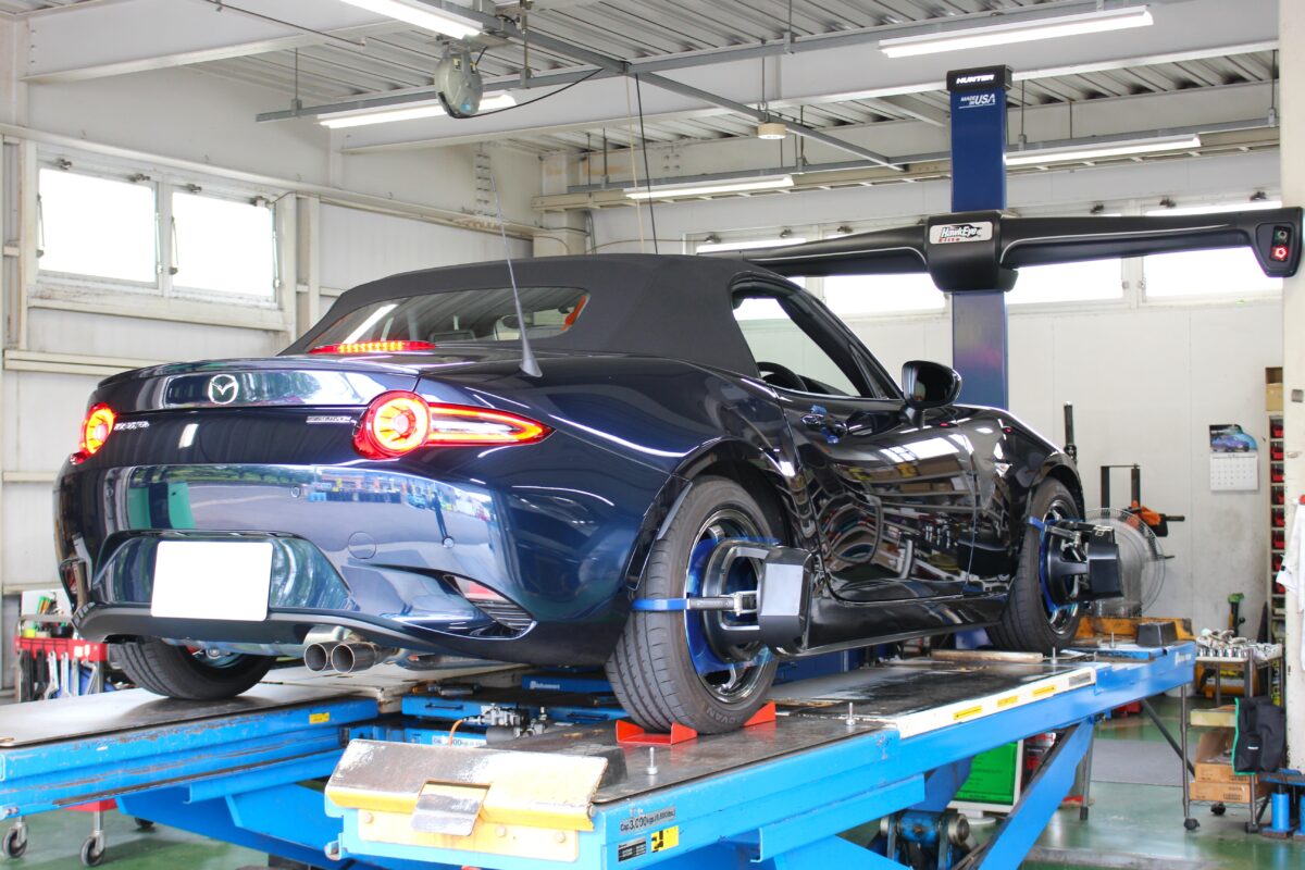 NDロードスターのカスタム、3Dアライメント調整は当店にお任せ下さい。