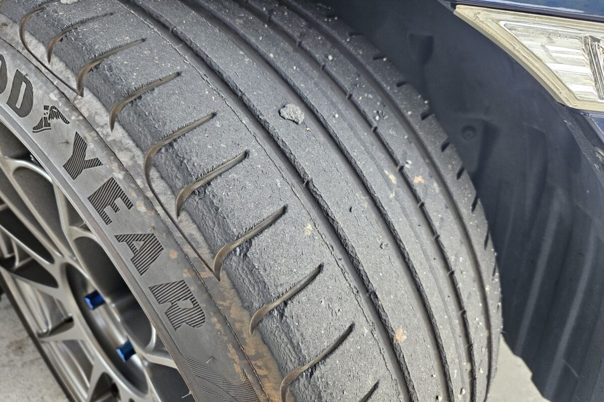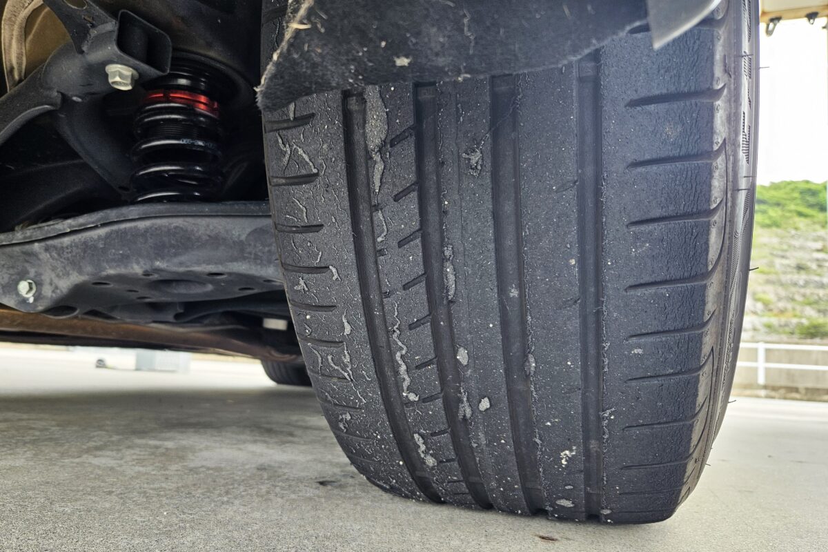 そして、走行後のタイヤですがこんな感じです。