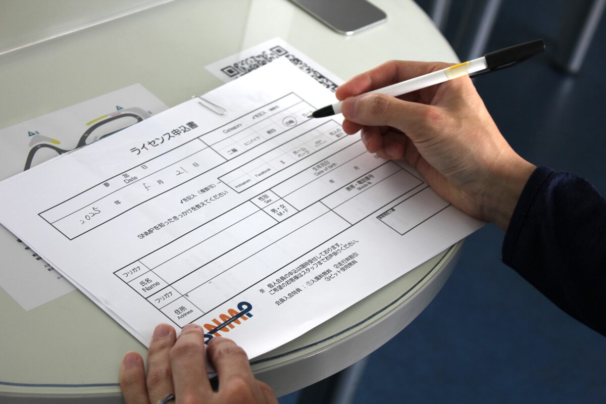 まずは当日受付にてライセンス申込書に記入し、その場でフラッグの意味やコース説明の講習を