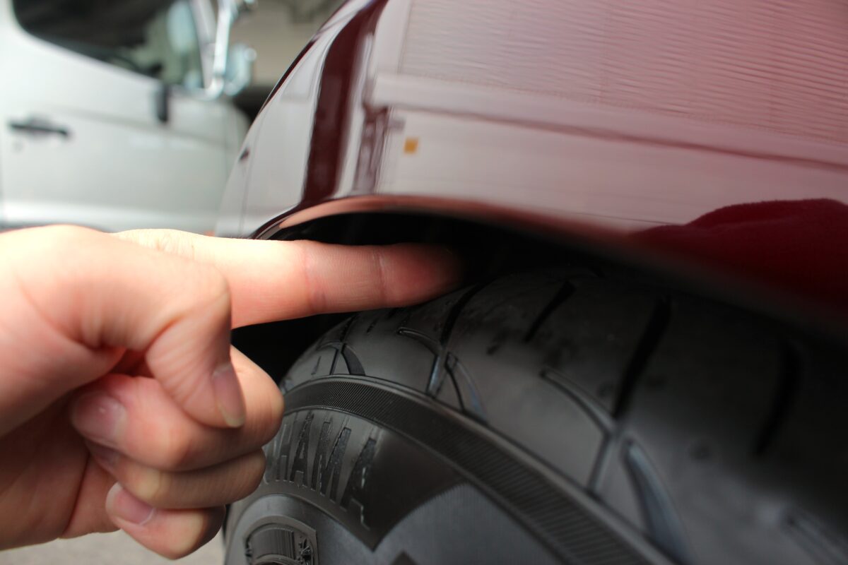 ローダウンを行い車高調整後のフェンダークリアランスです。