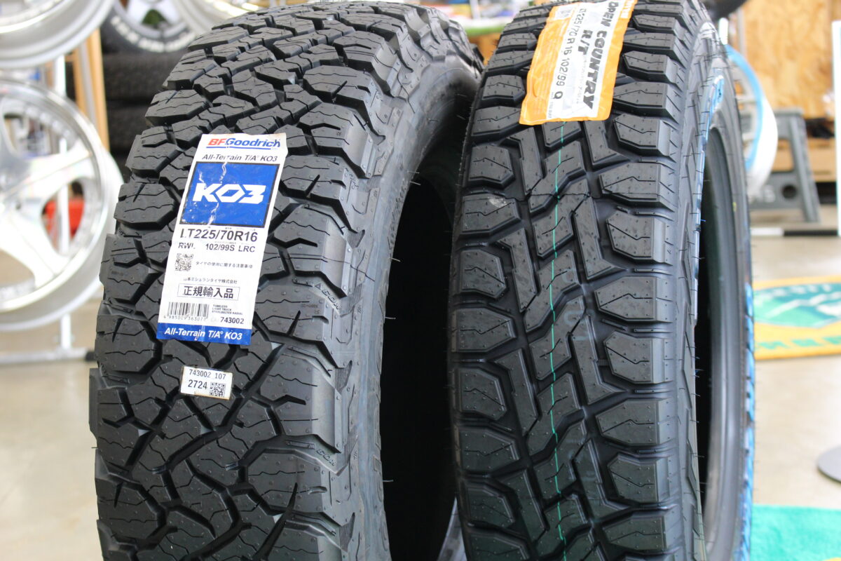 コチラが225/70R16のBFグッドリッチKo3とオープンカントリーRTを見比べました