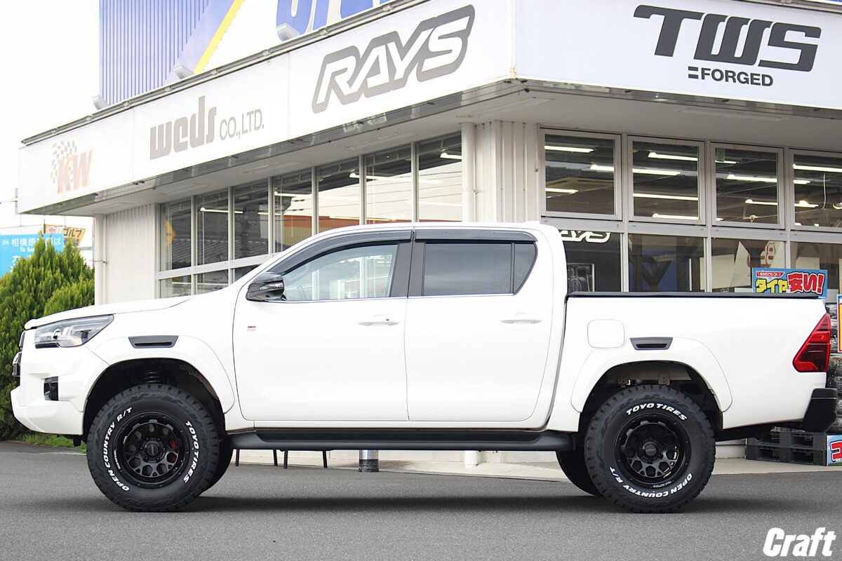 ハイラックスはホイール・タイヤサイズによってインナーカバー等に干渉する可能性が大きいクルマとなりますので、サイズのご相談はクラフトにお任せくださいね~
