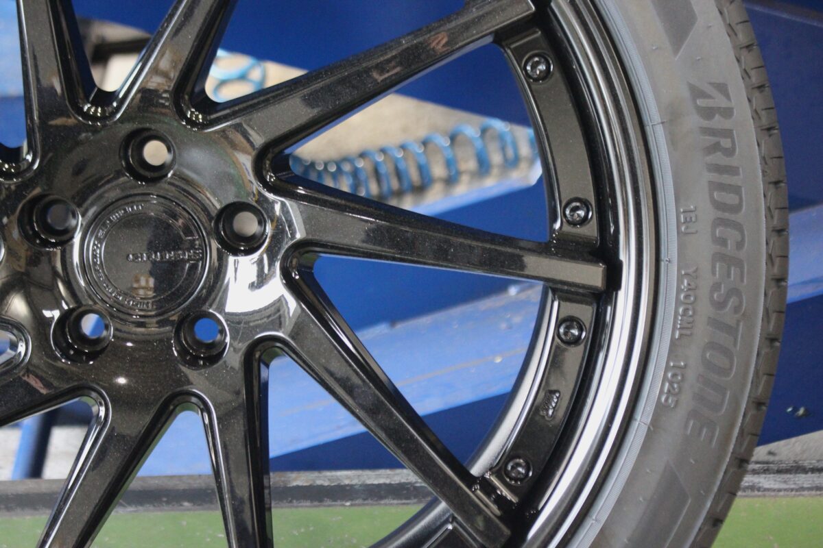 ディスクを艶有りブラック、リムもブラックアルマイトリム、ピアスボルトにエアバルブも黒にする統一感!!!