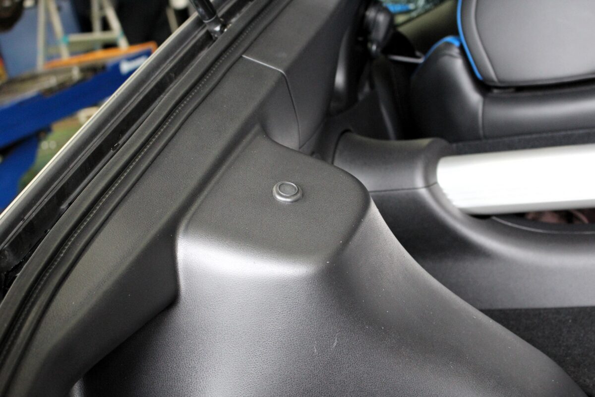 リアの減衰調整をするには内装の穴あけ加工が必要。
