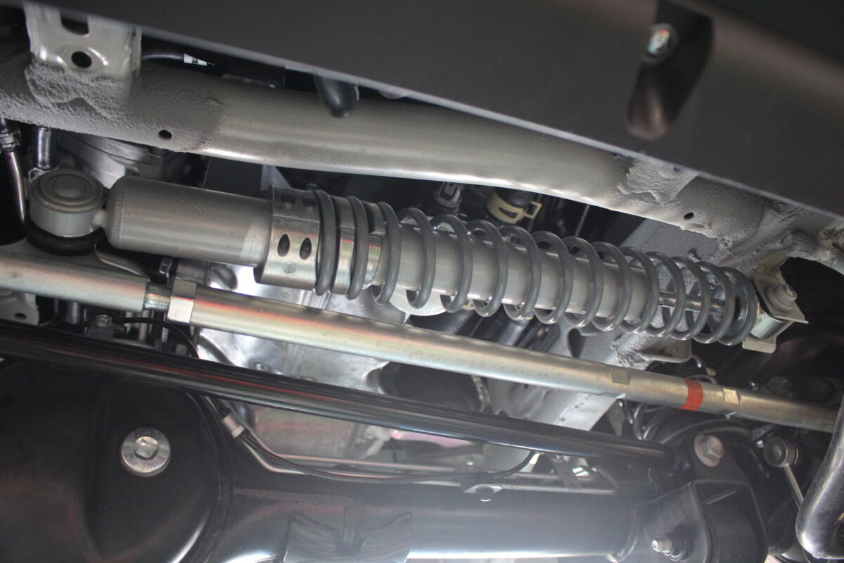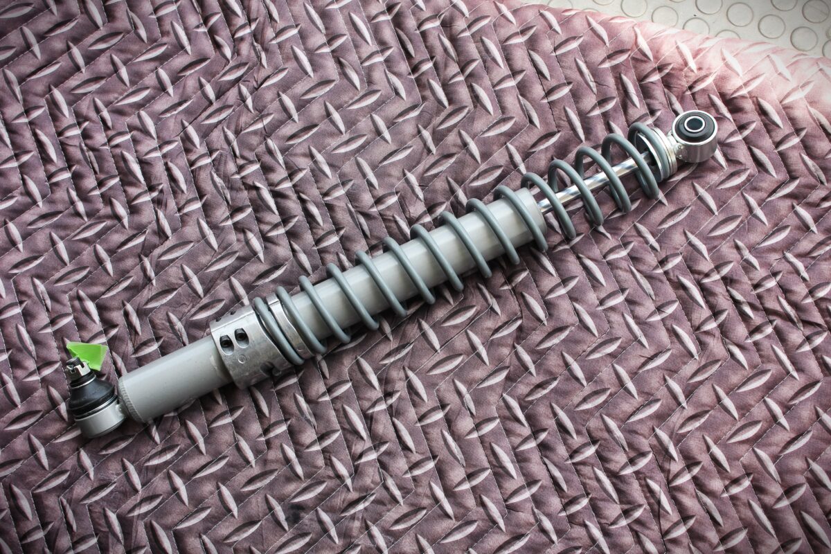 写真中央にある黒い普通のモノチューブダンパーですね。