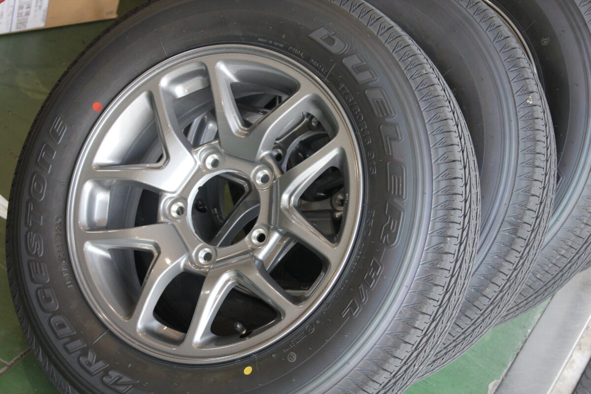 角ばった星型5本スポークはカクカクボディのジムニーにぴったりのデザインですね(^v^*)