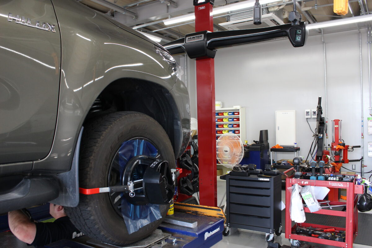 足回りの作業や車高の変化によりアライメントのズレが生じ補正が必須。
