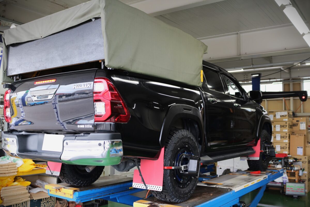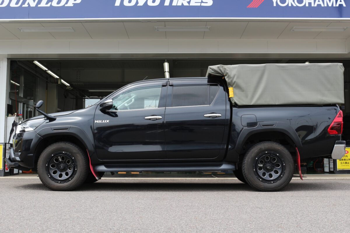 こんにちはクラフト多治見店です👋今回はハイラックスのリフトアップ施工とタイヤ交換の模様をご紹介