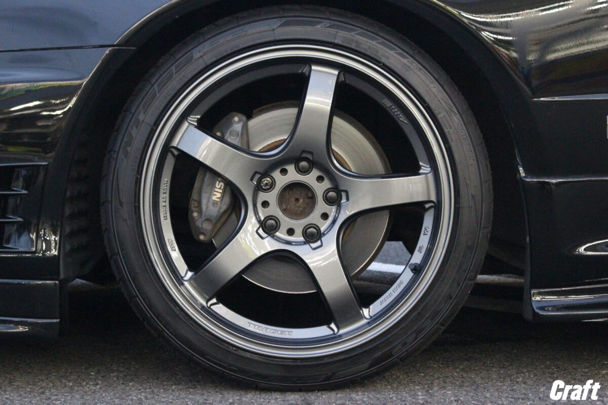 いつもありがとうございます!!クラフト厚木店・のりかずです。   本日ご紹介するのはA様・ER34スカイラインのタイヤホイール交換。     ご注文いただいたのはスポーツブランドで有名なエンケイさんと共同開発された「AME トレーサーGT-V」   軽量化に加え剛性も高いトレーサーシリーズはエンケイさんの技術、MAT製法で作られています✨   MAT製法とは、溶かしたアルミ合金をホイールの型に流し込み、冷えた後にローラーで圧力をかけながら伸ばしていきます。   そうすることによって軽量化にしつつ鍛造ホイールにも負けない強度が作られていきます。     トレーサーGT-Vが決めてとなったのは軽量だけではありません、サイズ感に加え納期が早かったのも決め手となりました!   オーナー様の絶対条件として保安基準内のツライチ、5本・6本スポークデザイン・納期が早いホイールの3点、次にコンケイブが深いホイール・リアには9.5Jをインストールといったのが目標。   そして、すべての条件にあったのが今回のホイール「トレーサーGT-V」なんですよね~     出ヅラはこちら↑   フロント)8.5J-18 リア)9.5J-18 となっております   ローダウン車になるのでちょうどいいサイズ感となっておりますよ👍   もっと攻めたサイズも装着できるクルマなので、「攻めたサイズを装着したい!」って方はクラフトにご相談くださいね~     A様この度はクラフトをご利用いただきありがとうございました!!   出ヅラちょうどよく決まりましたね✨   装着後は楽しくドライブできていますでしょうか~?   エア点検などでもぜひクラフトをご利用くださいね~   管理番号:0412507101004