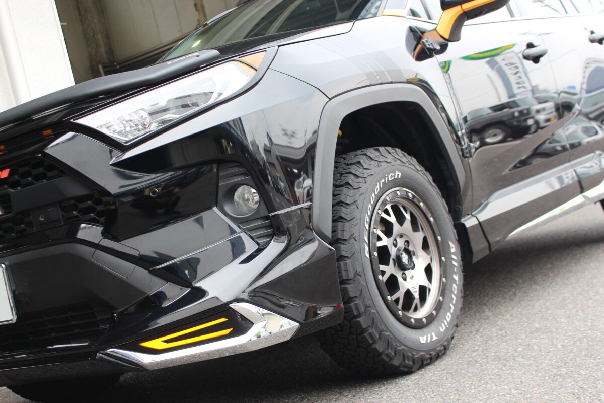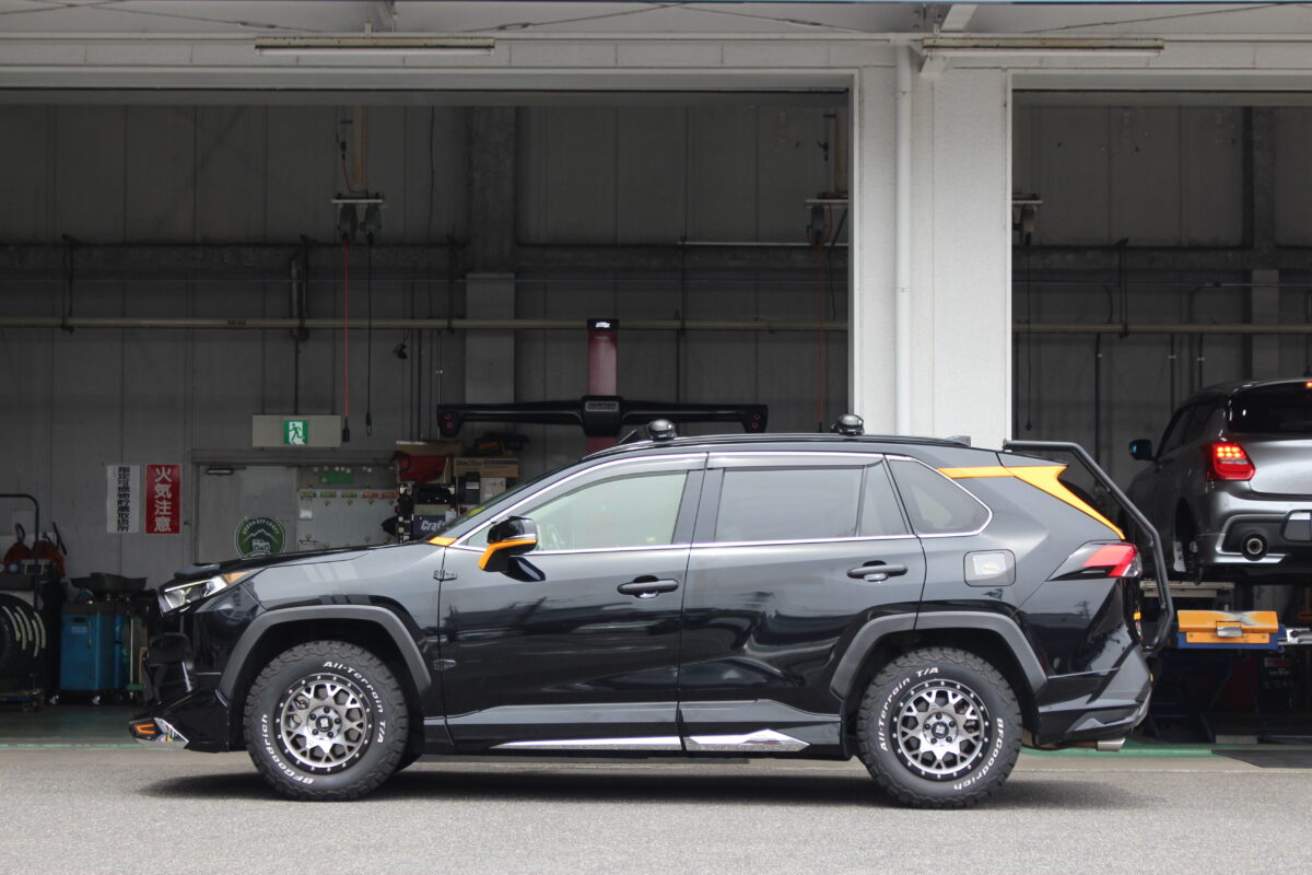 RAV4のカスタムはリフトアップや定番のホイール交換などからルーフラックやリアラダー取付など多岐に渡ります。