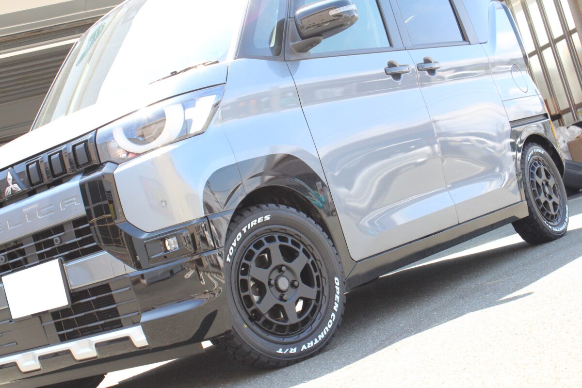 デリカミニはフェンダー回りがブラックアウトされているのでホワイトレターがよりくっきりと映えますね。