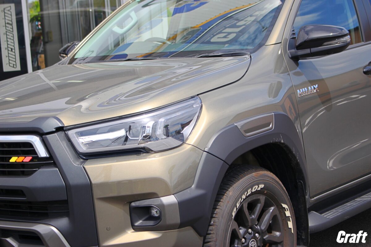 本日作業を行ったハイラックスは見ての通りカメラを装着し直前・直左の視界を確保しているおクルマ。