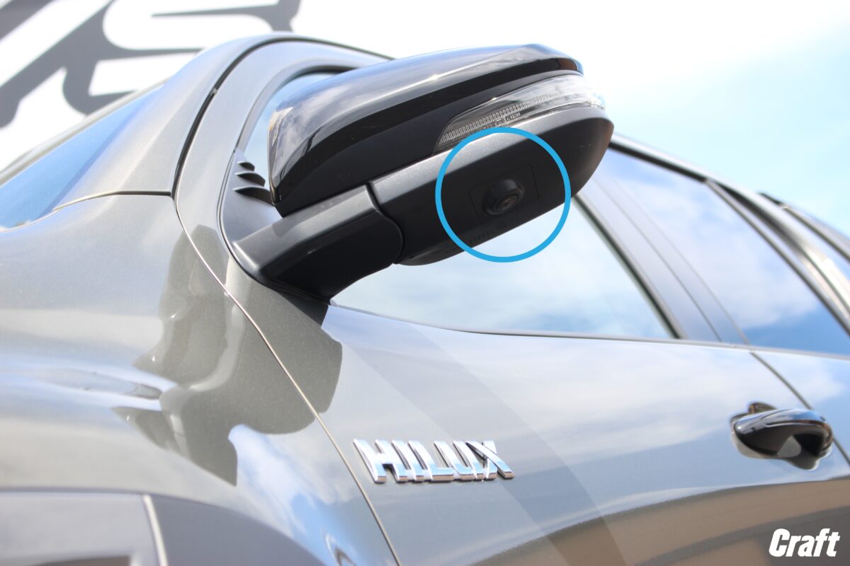 ですが、通常のハイラックスではカメラは装着されておらず、左フロントフェンダー部に小さいミラーがにょきっと顔を出しているかと思います。
