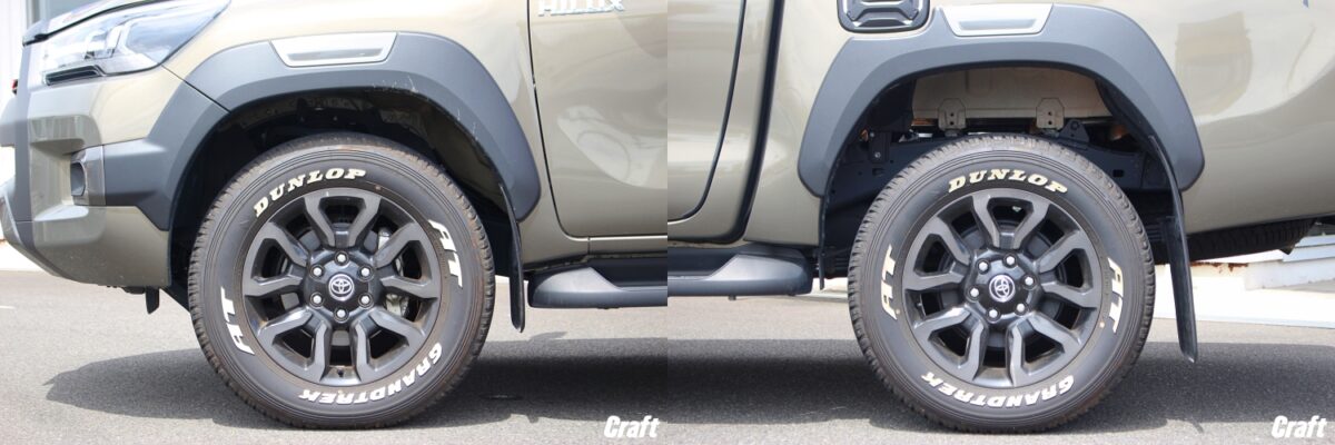 ですが、コチラの画像はリフトアップ後のハイラックスなんです!!