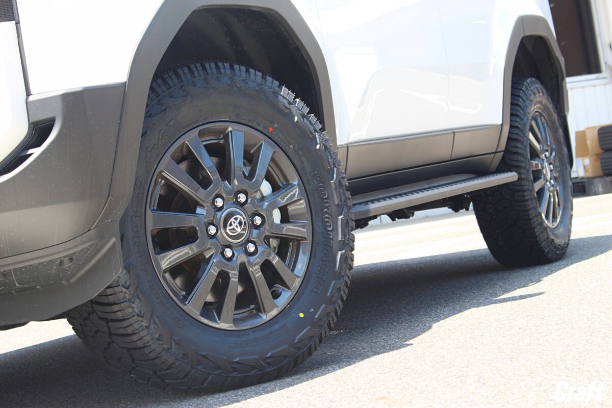 装着しているタイヤ・ホイールも18インチとなり、ランクル250のスタンダードなサイズ。