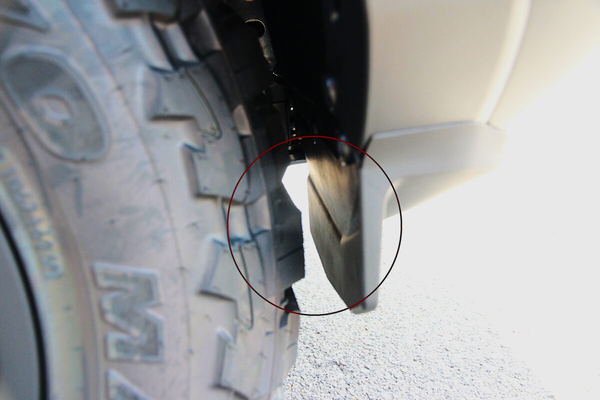 ハンドル旋回時でのフロントバンパーへの近さはご覧の通り。