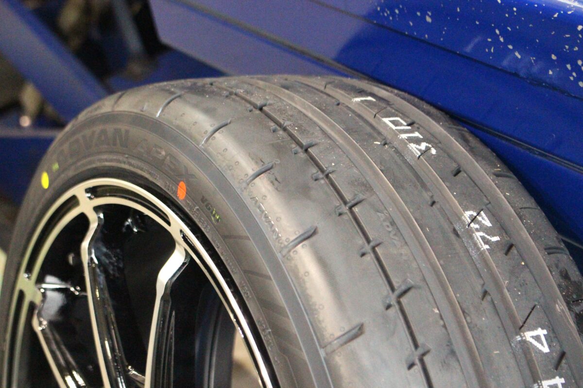 スポーティータイヤながらも静粛性に配慮されたヨコハマタイヤのアドバンAPEX V601を組み合わせます。トレッド外側に幅広・高剛性リブを採用しており、優れたハンドリングレスポンスを発揮します。