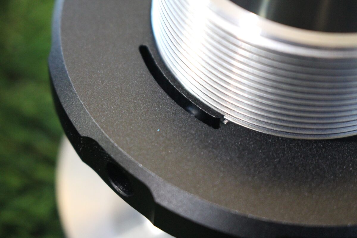 細部にも拘りポイントが!ロックシートを使用しないタイプのロアシートなのでイモネジで回り止めとするのですが、イモネジがショックボディのネジ山を傷めないようにロアシート内側が特殊な形状になっています(・□・;)