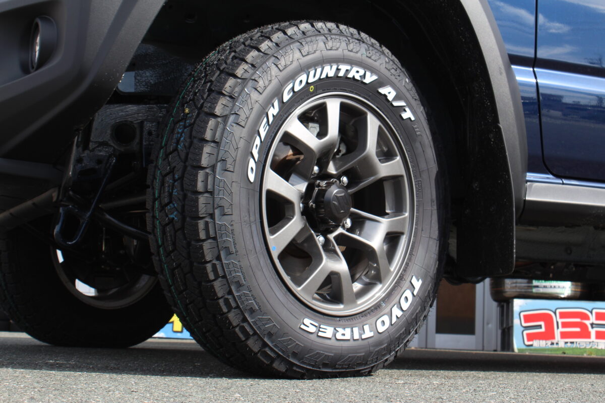 オープンカントリーAT3はホワイトレターとの相乗効果で一目でオフロードタイヤとわかる見た目です