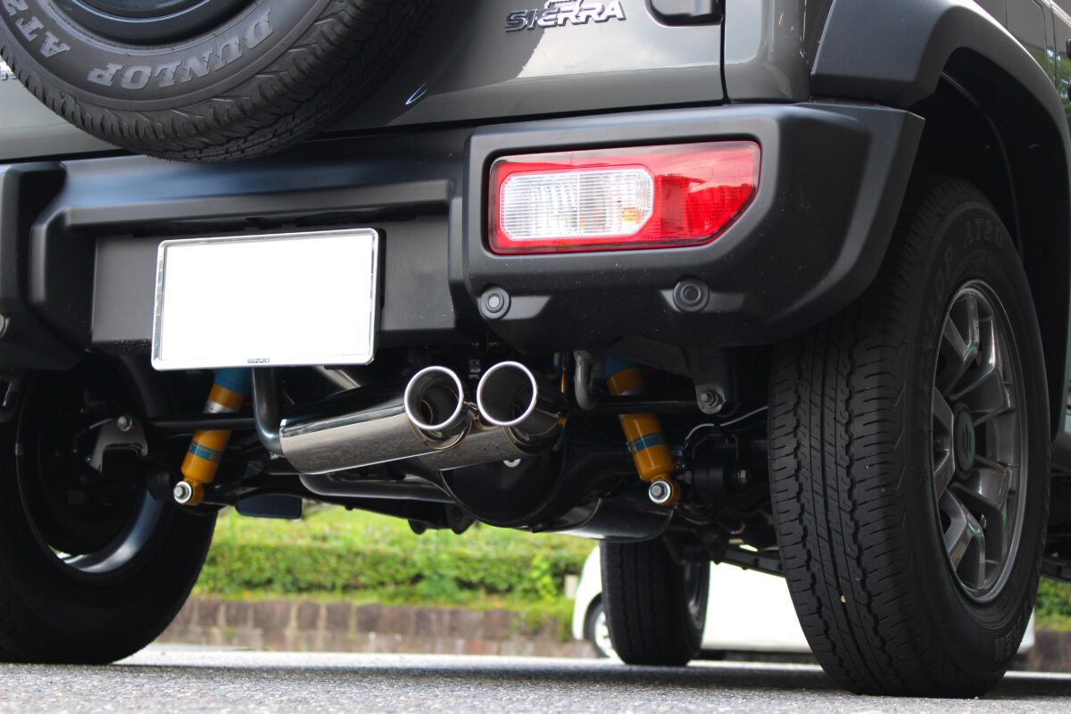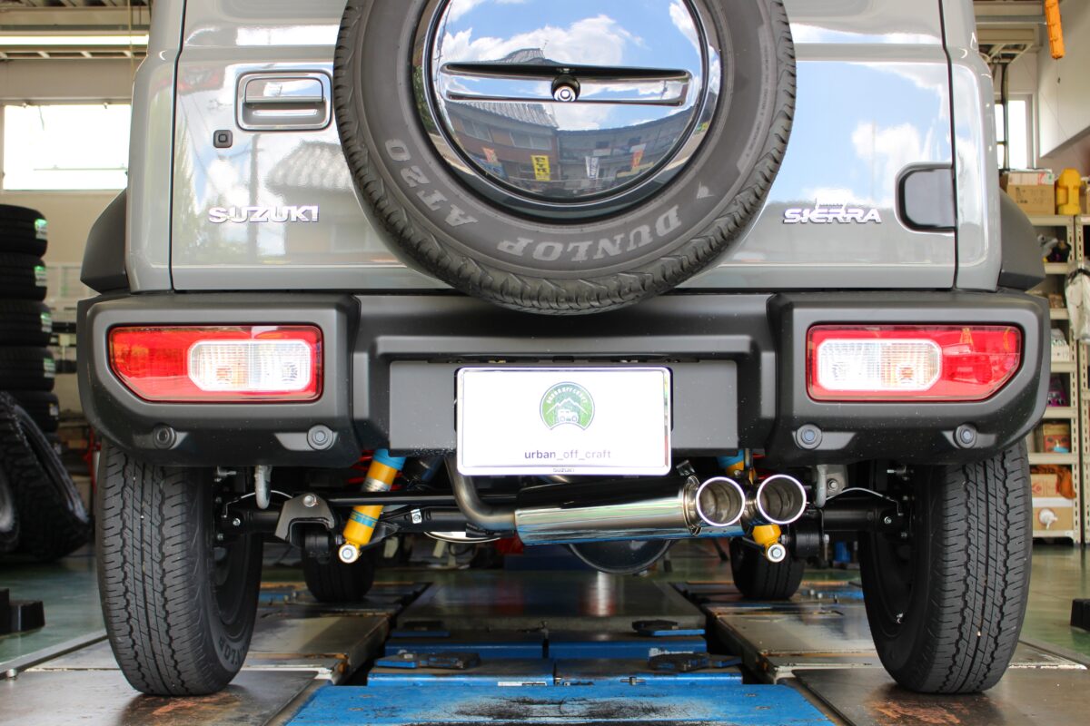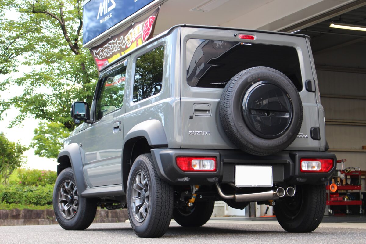 ジムニーシエラに2連砲弾マフラーを装着!人気ランキング上位の5次元SPSPEC STREETを装着!