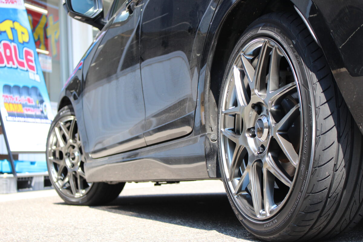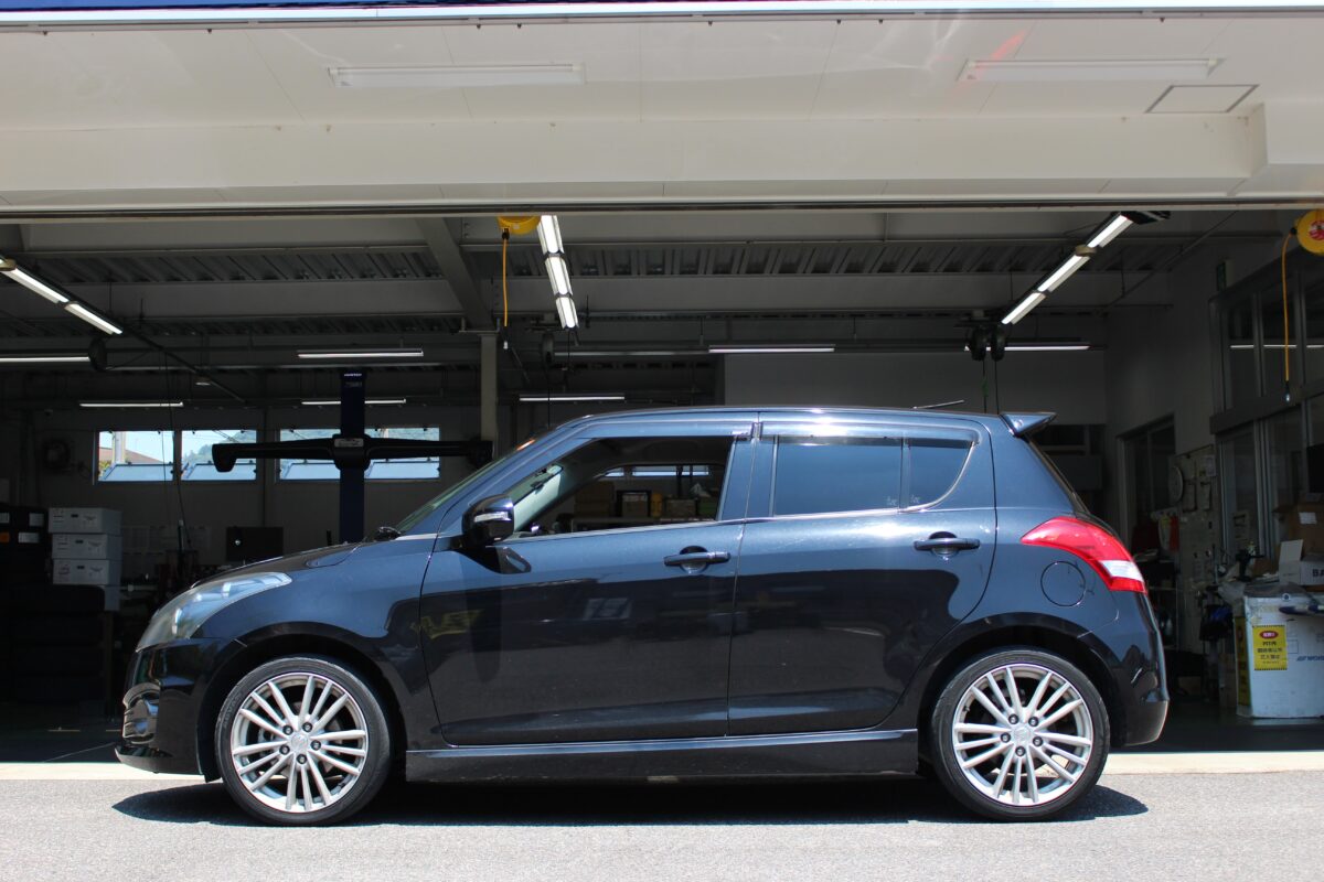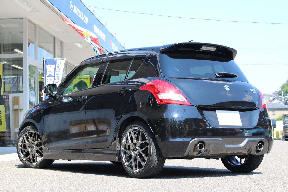 スイフトスポーツにダウンサスを装着しローフォルムに!タイヤホイールカスタムも同時施工!