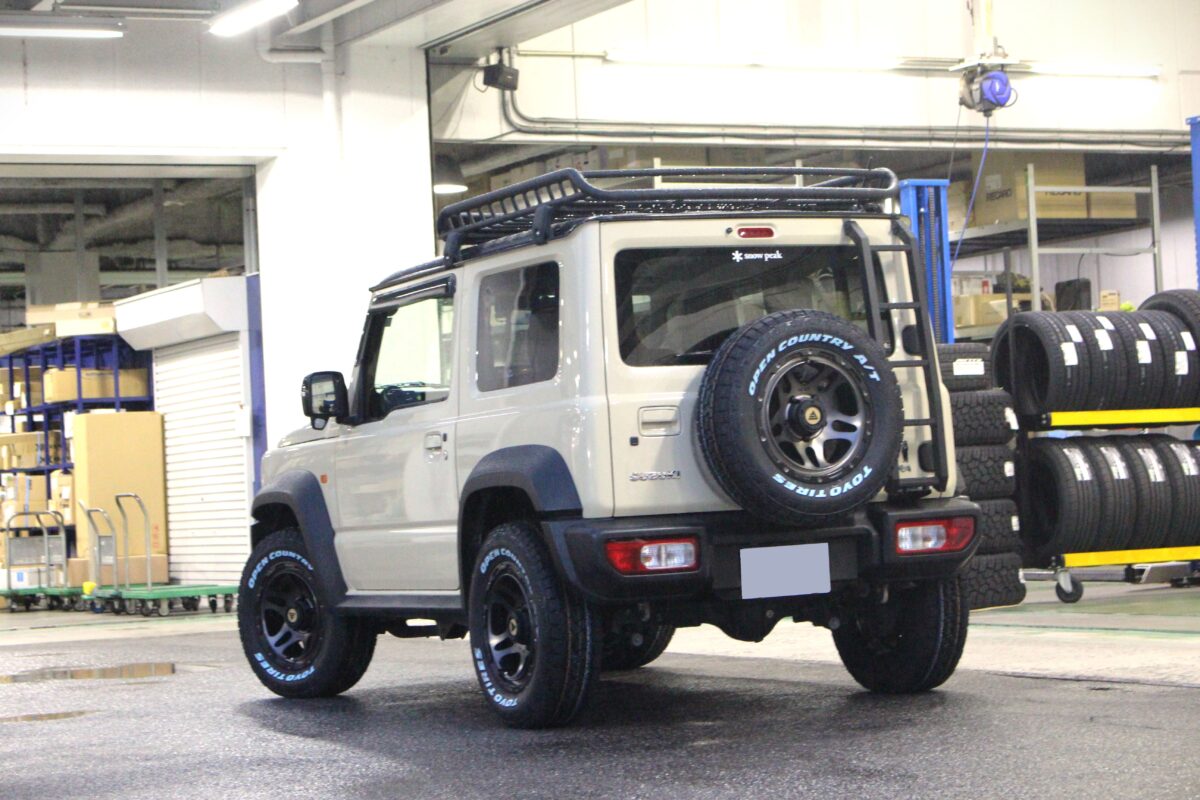 元々リアラダーが装着されており、タイヤサイズ等計算上はクリアランス的に干渉しないであろう…という状態であった今回のジムニーシエラ。