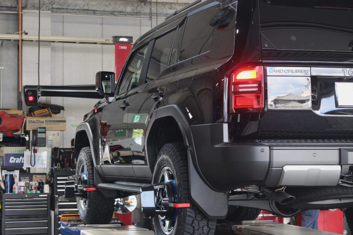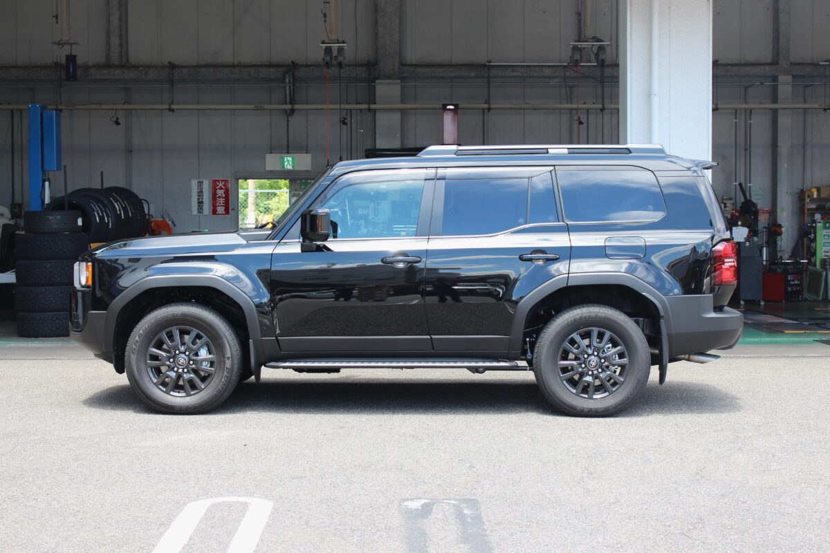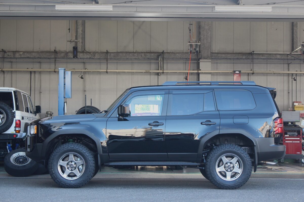 ガチっとリフトアップし、タイヤホイールセットも交換し終えたランクル250。
