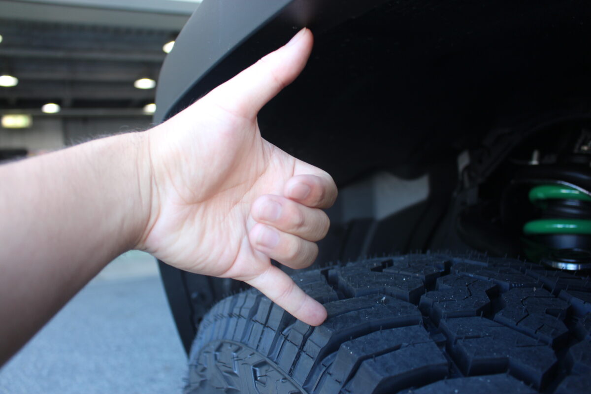 タイヤホイールセットと共にリフトアップも行っているので、
