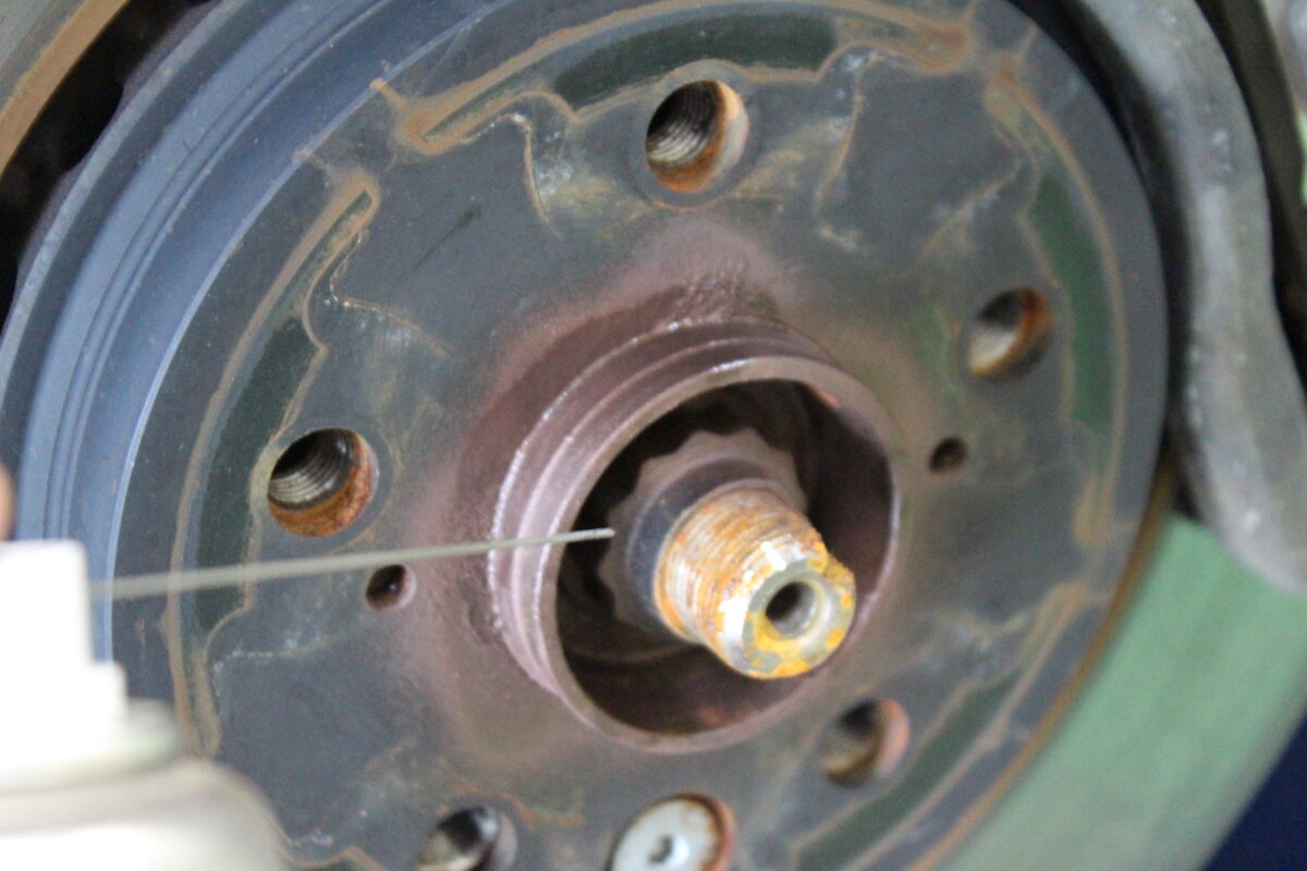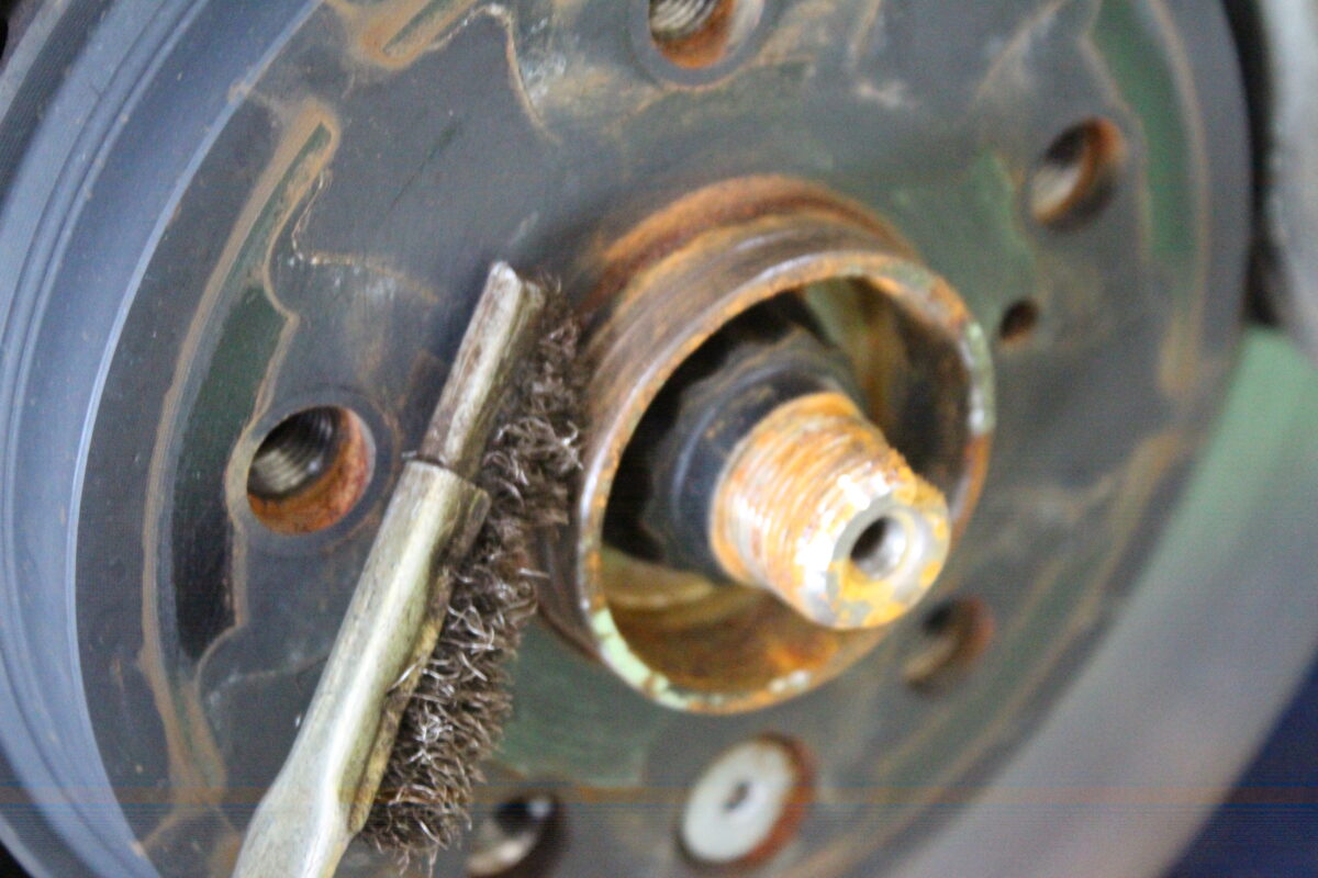 ハブリングをしっかりはめ込むため、ブラシで錆を落として・・・