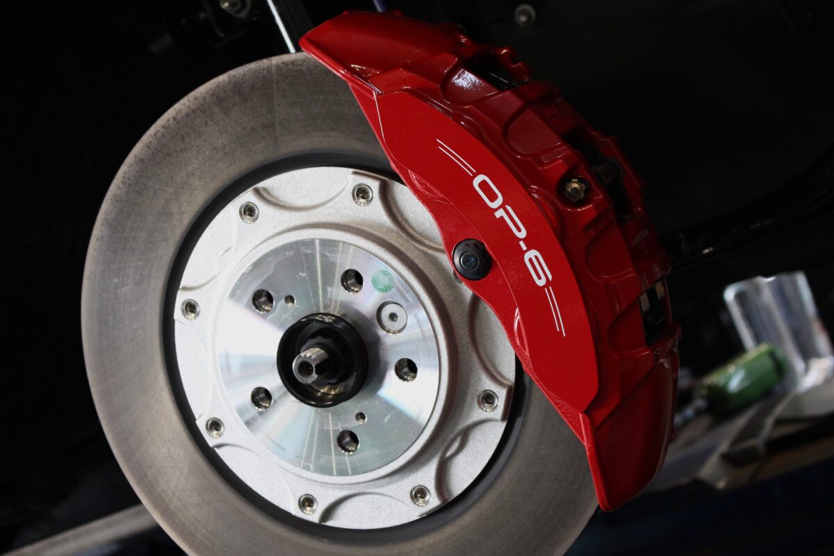 今回のクラウンエステートRSでは、ブレーキキャリパーが通常モデルよりデカいのが付いております。