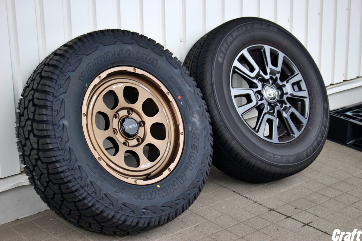 取り付けたアイテムは「レイズ A・LAP・08X」&「ヨコハマ ジオランダーX-AT」