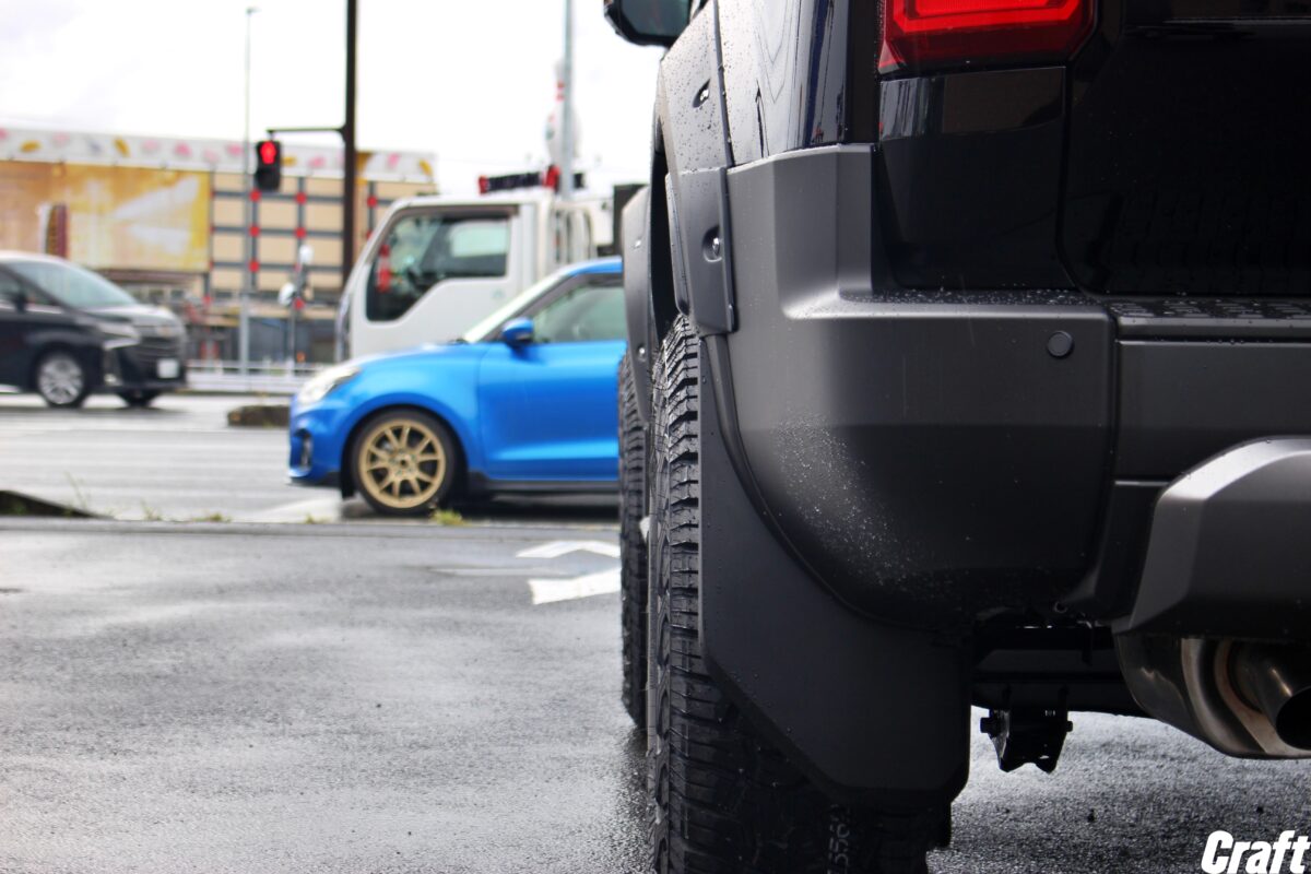 というのも今回のタイヤ&ホイールの組み合わせとなると片側9mm以上のフェンダーが装着されていないとガッツリ、ハミタイになるのでご注意ください。