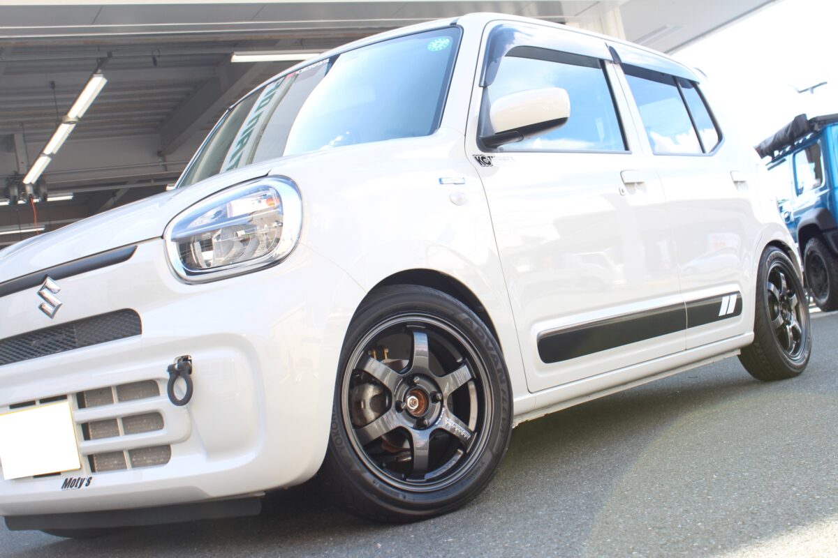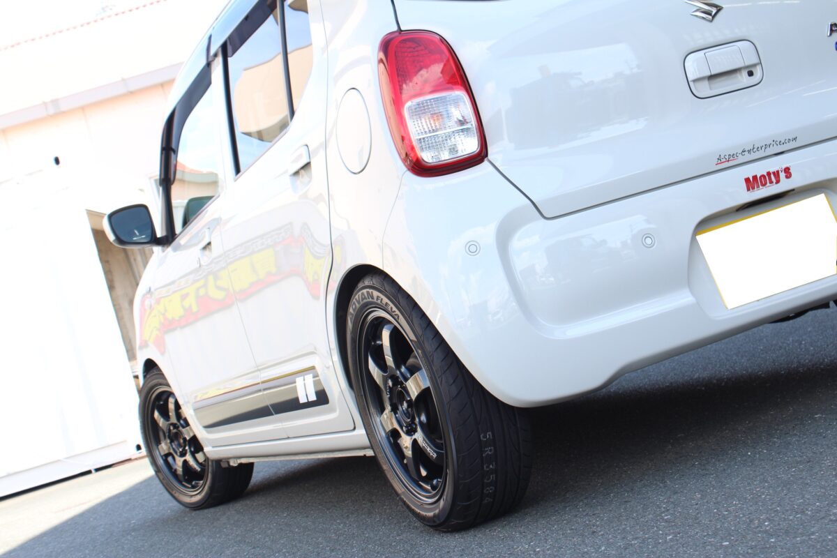 HA37Sのアルトは当店ではまだ取り付け実績がなかったのですが、ローダウン済みとのことで5.5Jにチャレンジです!
