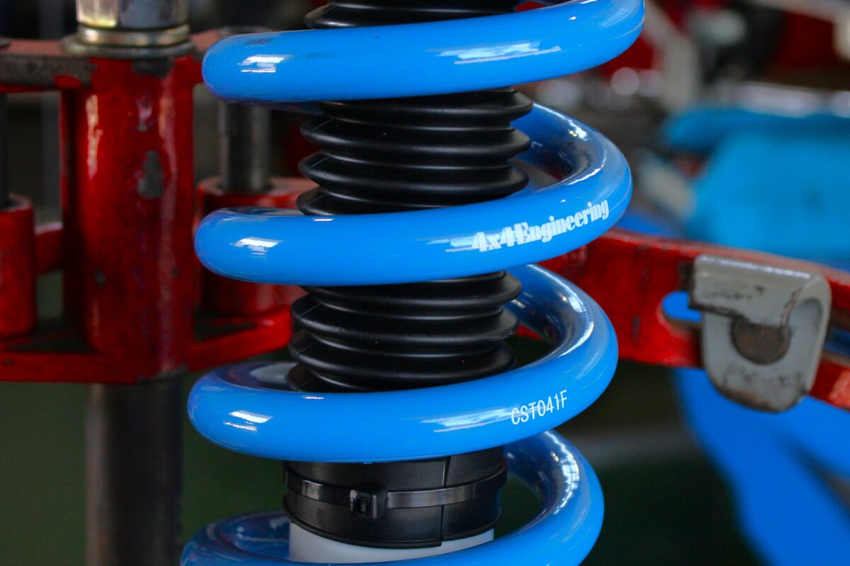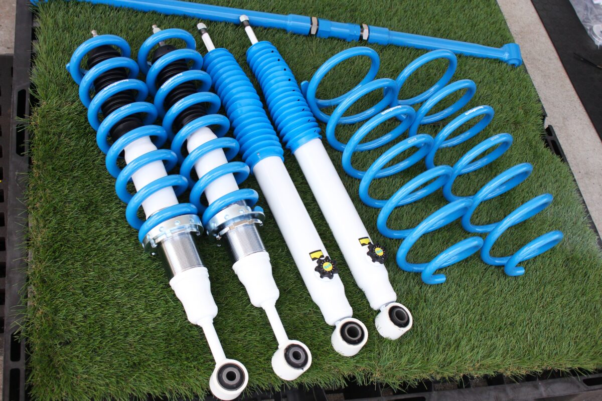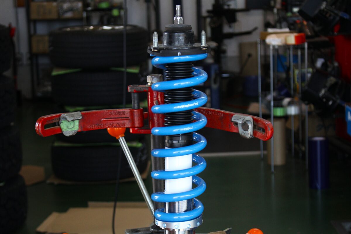 純正アッパーマウントと組み合わせ、オーナー様ご希望の車高へ調整していきます。