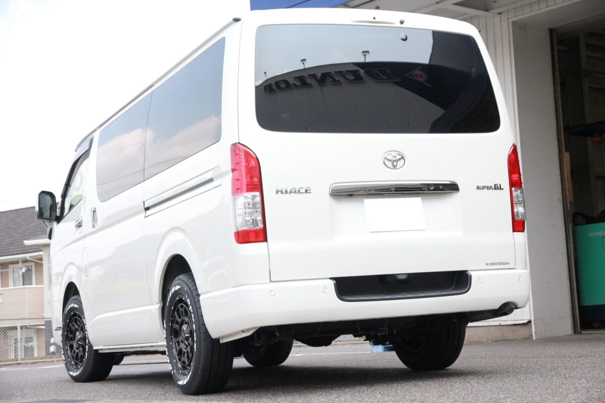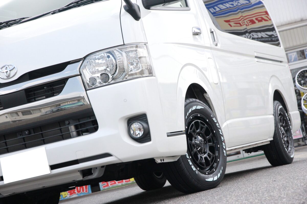 ハイエースではオンオフ問わず人気のホワイトレターを採用したモデルとなっております!