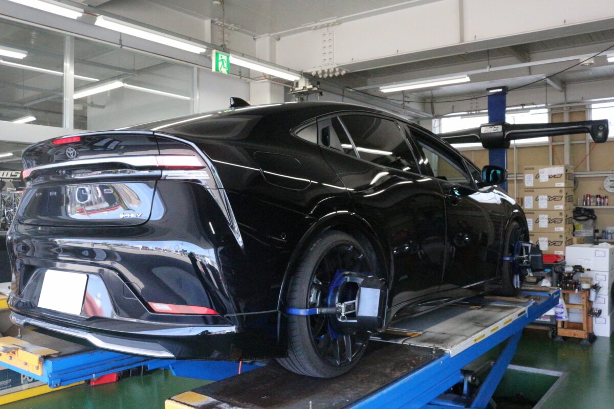 取り付けが終わると次の工程は大事な四輪アライメント調整👆