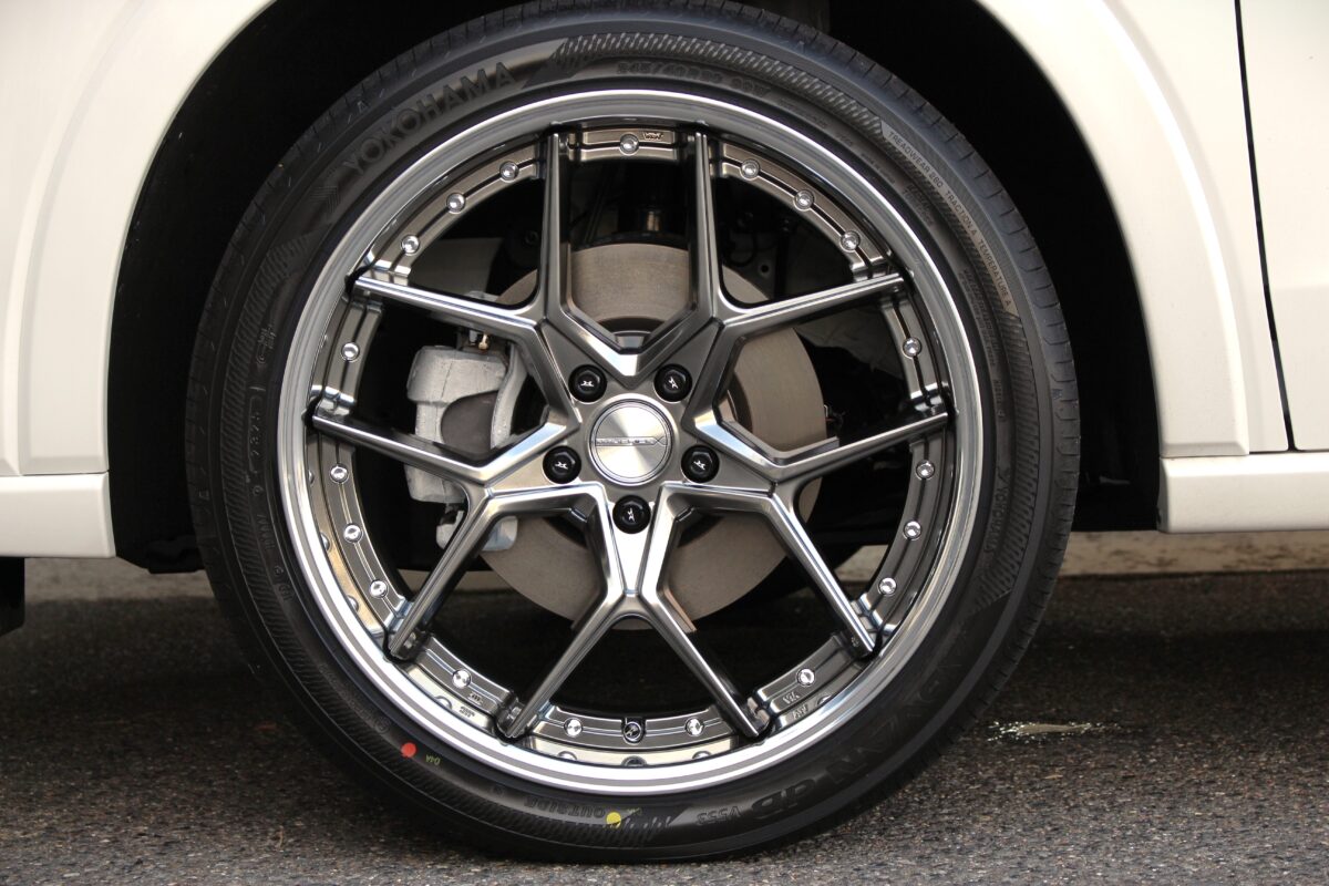 ヨコハマタイヤのプレミアムコンフォートタイヤ、アドバンデシベルV553を組み合わせます。ウェット性能に優れることで有名なヨコハマタイヤの中でも車内静粛性に注力して設計されています。