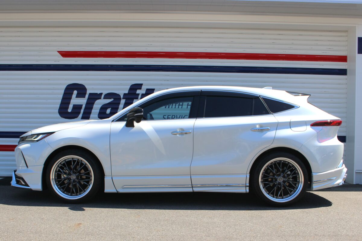 本日はダウンサスでローダウン済みのハリアーのオーナー様から、隙間をとにかく無くしたいということでシャコタン仕様にカスタムしていきます!