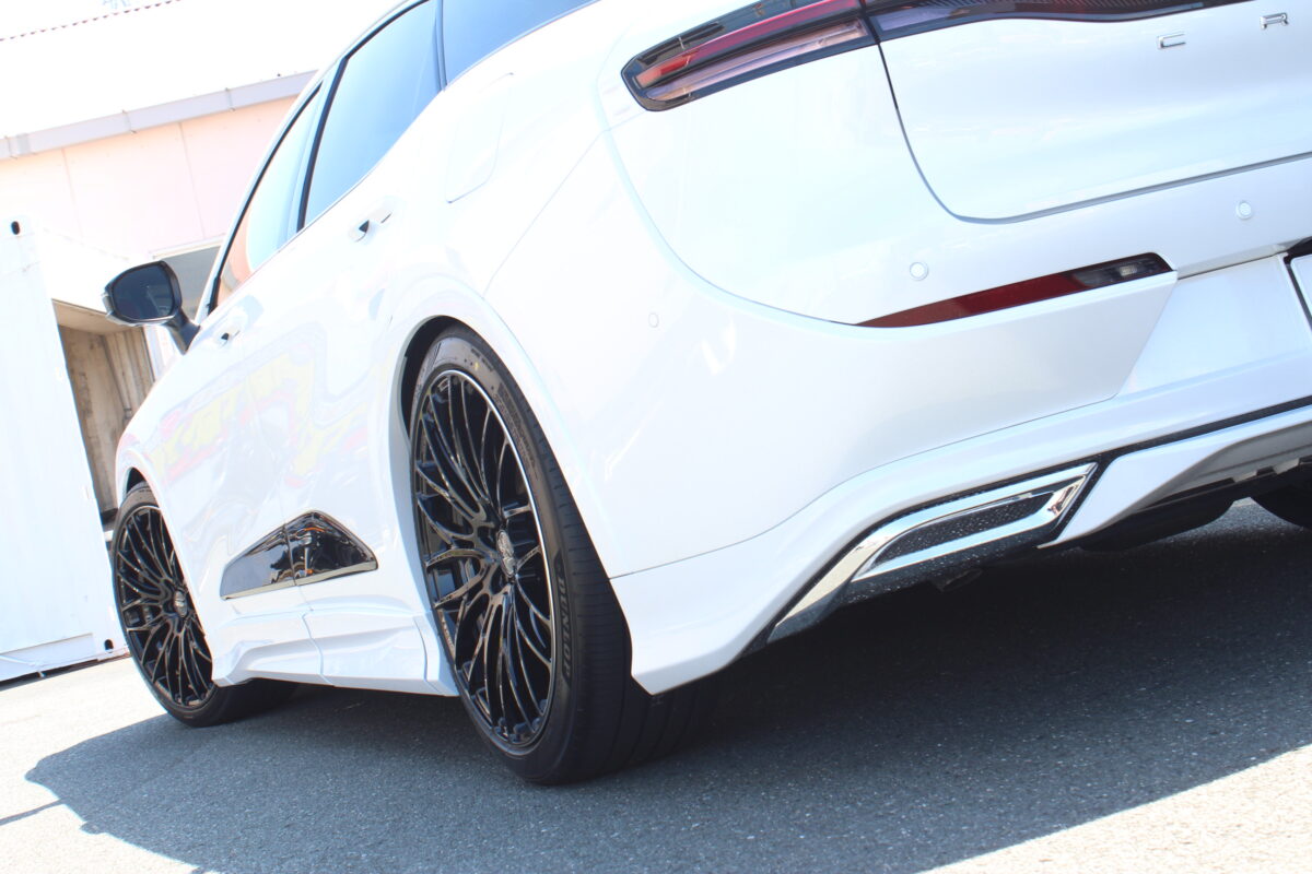 『245/40R21』を履かせて過度な引っ張りを抑えることで大人っぽい落ち着いたスタンスに仕上げています。