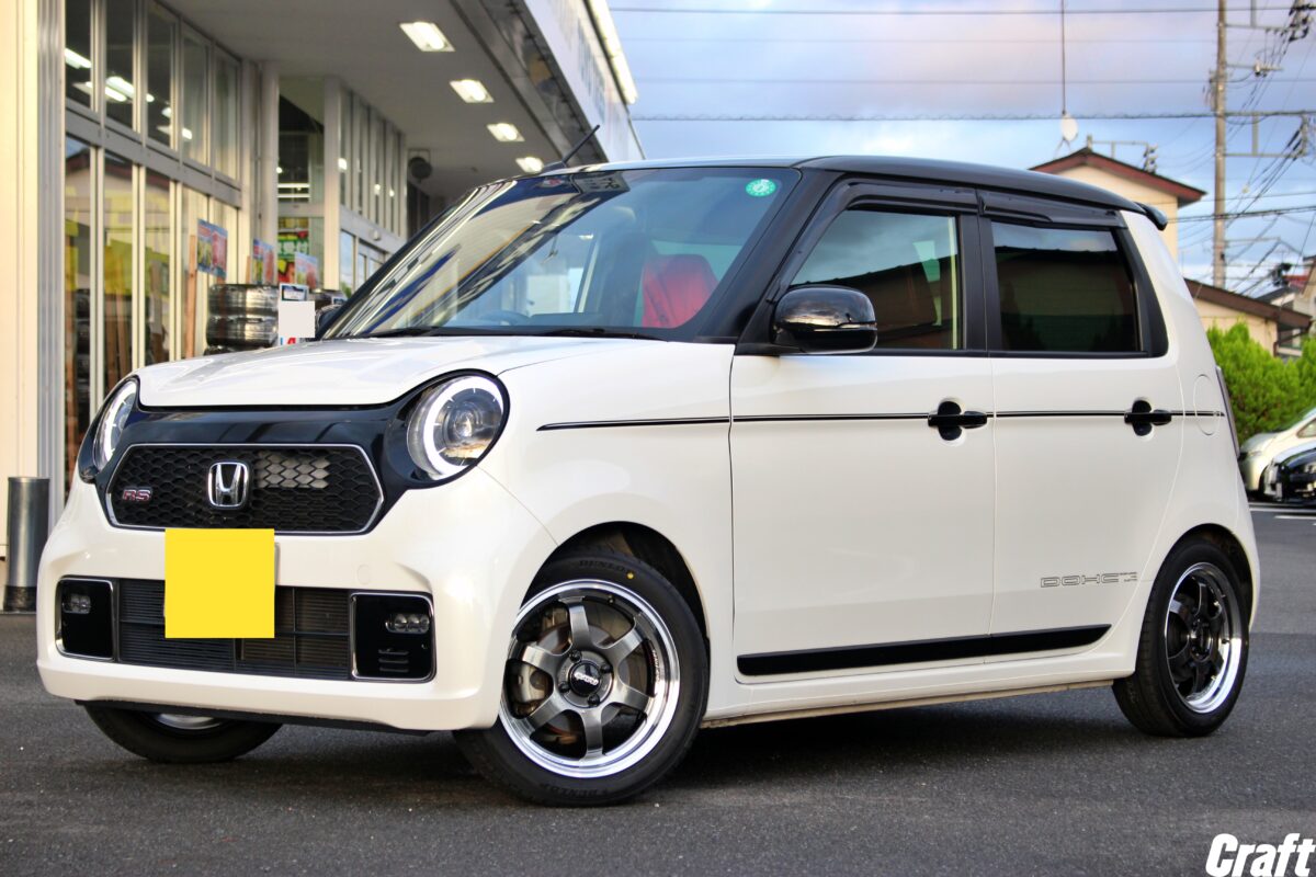 軽自動車でも6.0Jは履けますっ👍 車高調・キャンバーボルト・アライメント調整を行い完成ですっ✨     いつもありがとうございます、クラフト厚木店・佐藤です!!   本日のご紹介はK様・N-ONE。   車高調を装着し、アライメント調整などの追加作業を行い攻めたホイールサイズを履かせましたよっ 👍     ご購入いただいたホイールは 「 WORK MEISTER M1 16インチ 」   色々と手を加え、軽自動車とは思えない程のリムの深さをGet 👍   軽自動車用に設定されているホイールと言えば 「 5.0J インセット+45 」 と言うのが定番サイズだったりしますよね!?   ですが、そのサイズではリムの深さを求める事は出来ません。   むしろ、ディスク突出が発生するモデルが多いのが実情。。。     本日ご紹介のN-ONEに装着したホイールサイズは 「 6.0J 16インチ 」 となります!!   えっ!? 軽自動車に 6.0J なんて履けるの?? って思った方も多いと思いますが、色々と手を加えてあげると装着出来るようになるんです。   もちろんインセットも重要になってくるので1ピースホイールではなく2ピースや3ピースホイールと言ったマルチピースホイールの方がより選択肢が広がります。     本日装着しているホイールサイズは前後同一サイズ。   なので、リムの深さはフロント・リアともに同じリム深仕様へと仕上がっています!!   色々と手を加えて軽自動車とは思えないホイールサイズを装着する理由は、この 「 リムの深さをGetするため 」 でもあります。   リムの深さと言うのはすべてのクルマが一緒の深さではないんですよね。。。   ですが、せっかくリム有りホイールを装着するなら少しでもリムを深くしたいと思いますよね!?     もちろん限界はありますが。。。   手を加えずにそのまま装着するのと、今回のように色々と手を加えて装着するのとでは仕上がりは全然変わってきます!!   「愛車にリム深ホイールを履かせたい 」 そうお考えのオーナー様はクラフト厚木店までぜひご相談下さいね!!     K様、この度はご利用誠にありがとうございました!!   車高調の装着から始まり、ホイール選びにサイズ選びと色々と大変でしたね。。。   その甲斐もあり、カッコ良い愛車に仕上がったのではないでしょうか??   それでは楽しいCarライフをお送り下さいね、またのご利用お待ちしておりま~す☆☆